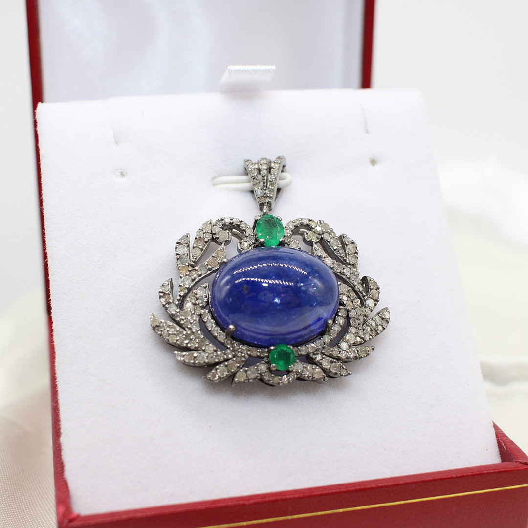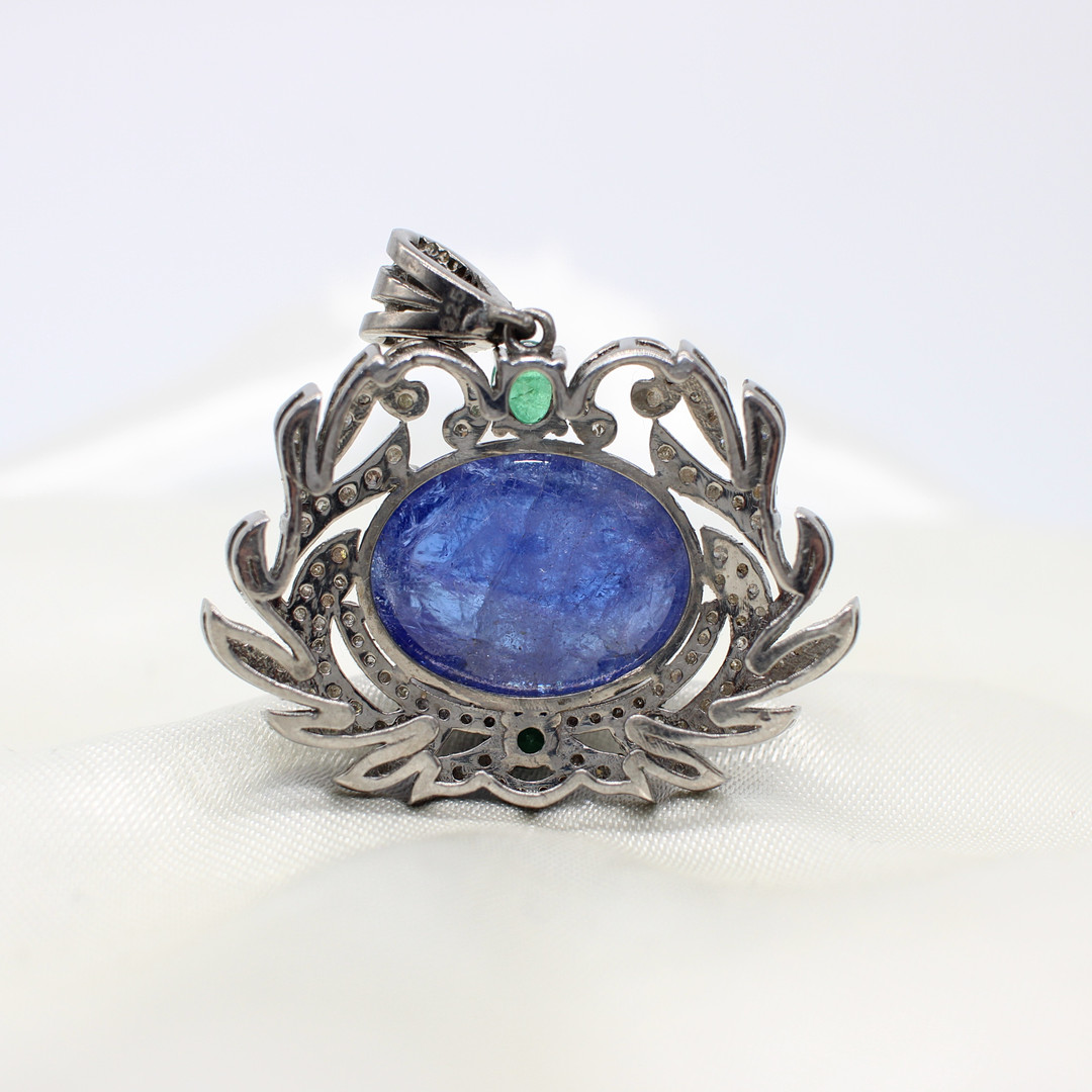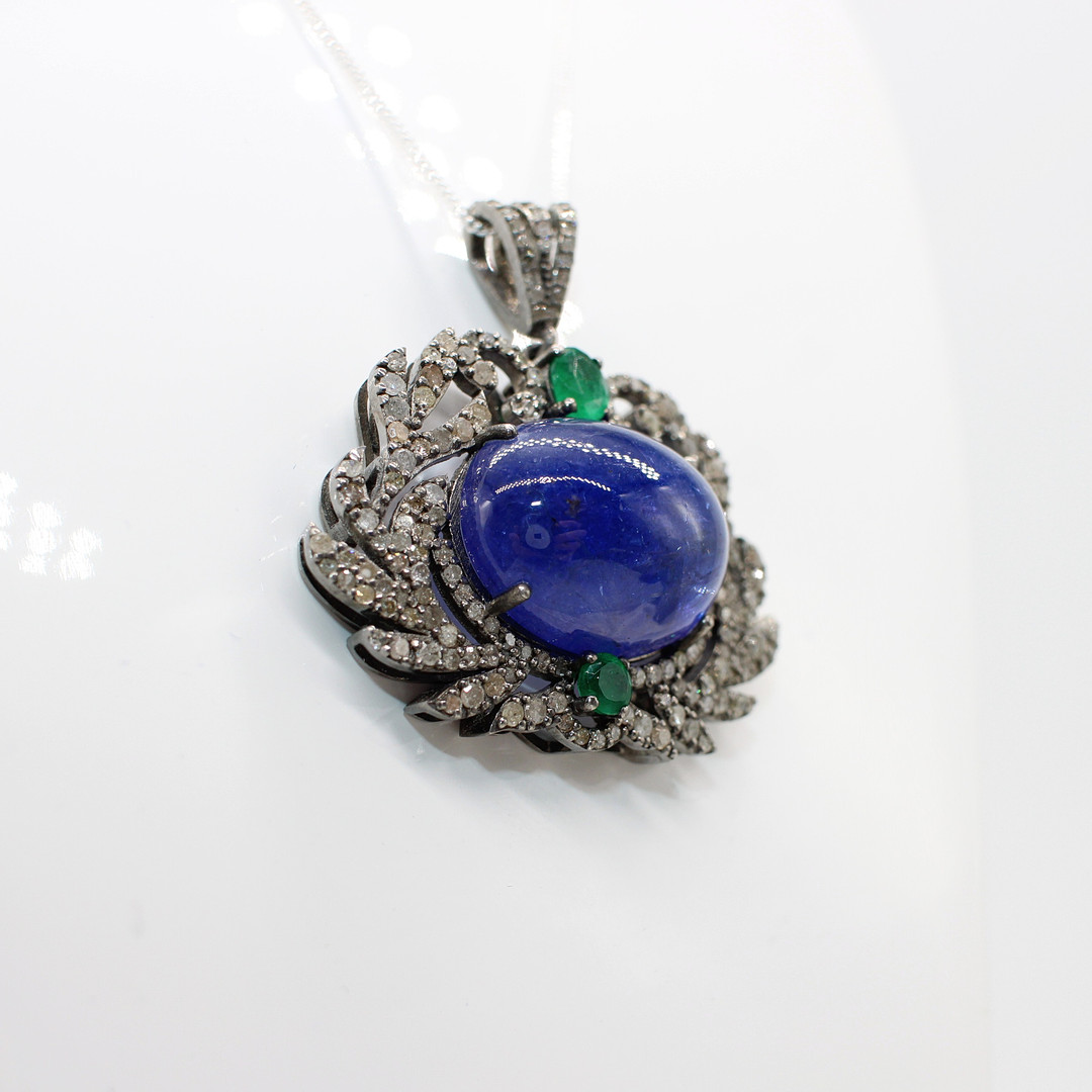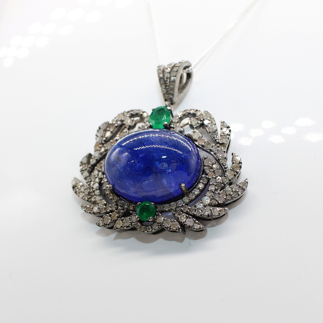 4938566. ANHÄNGER AUS TANSANIT, SMARAGD UND DIAMANT.