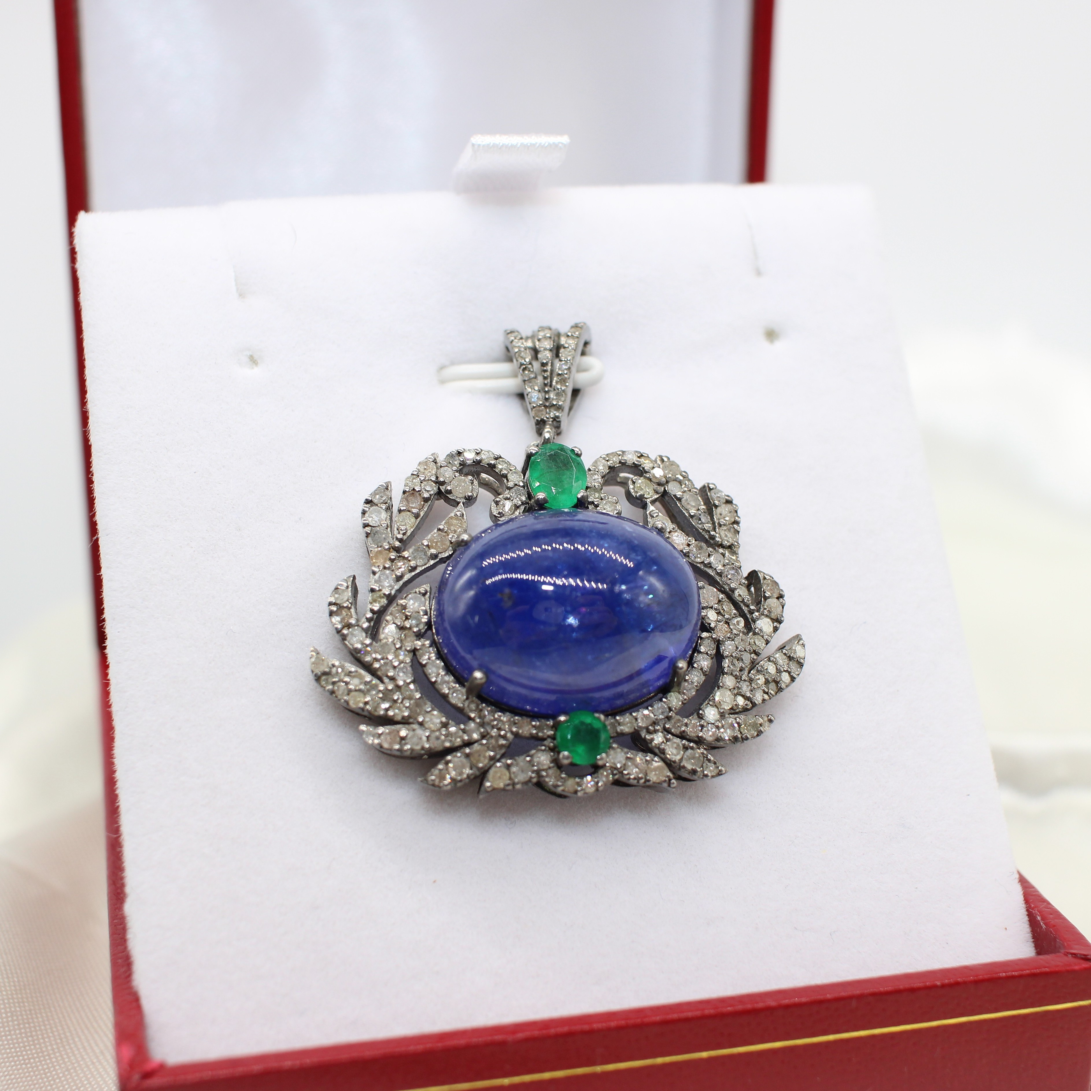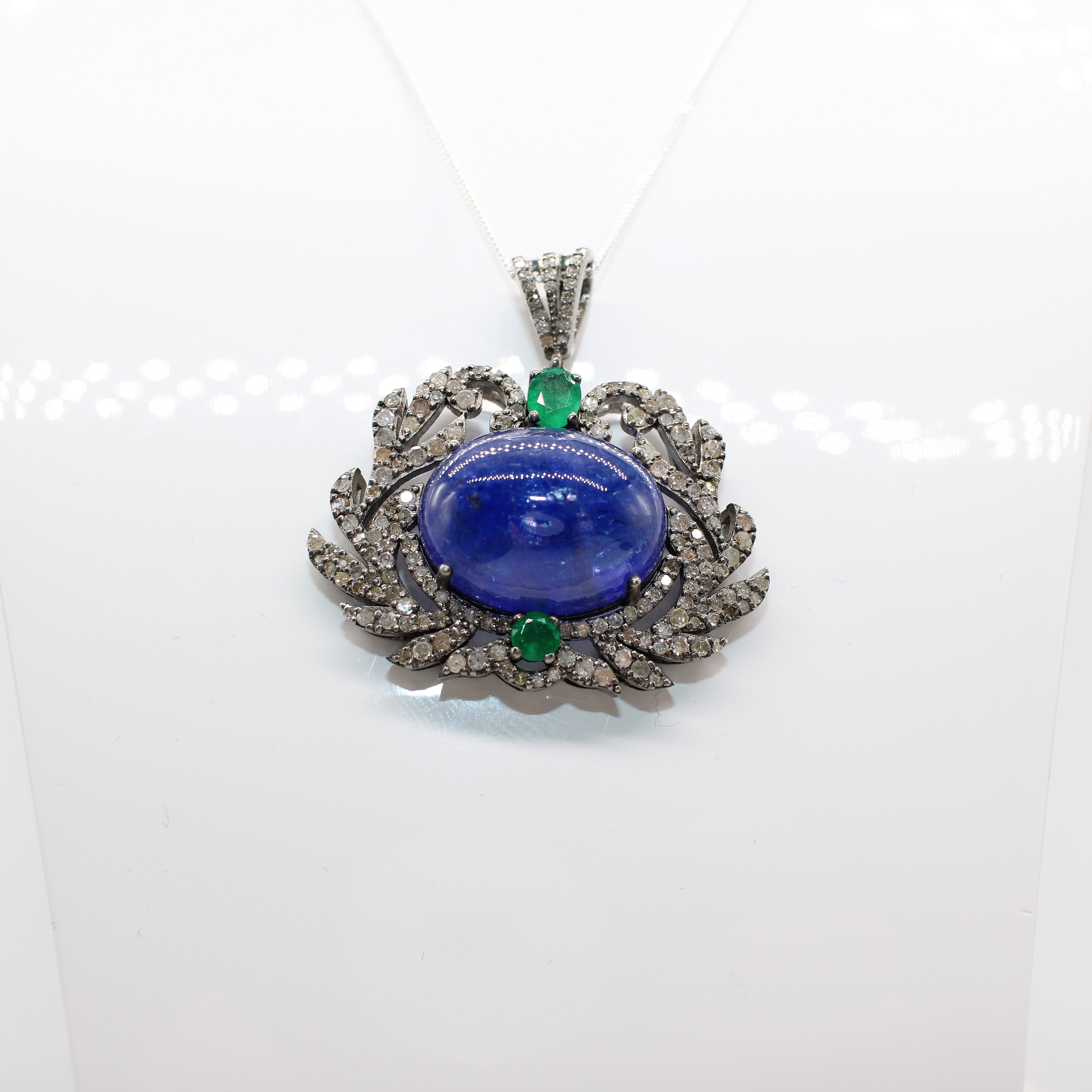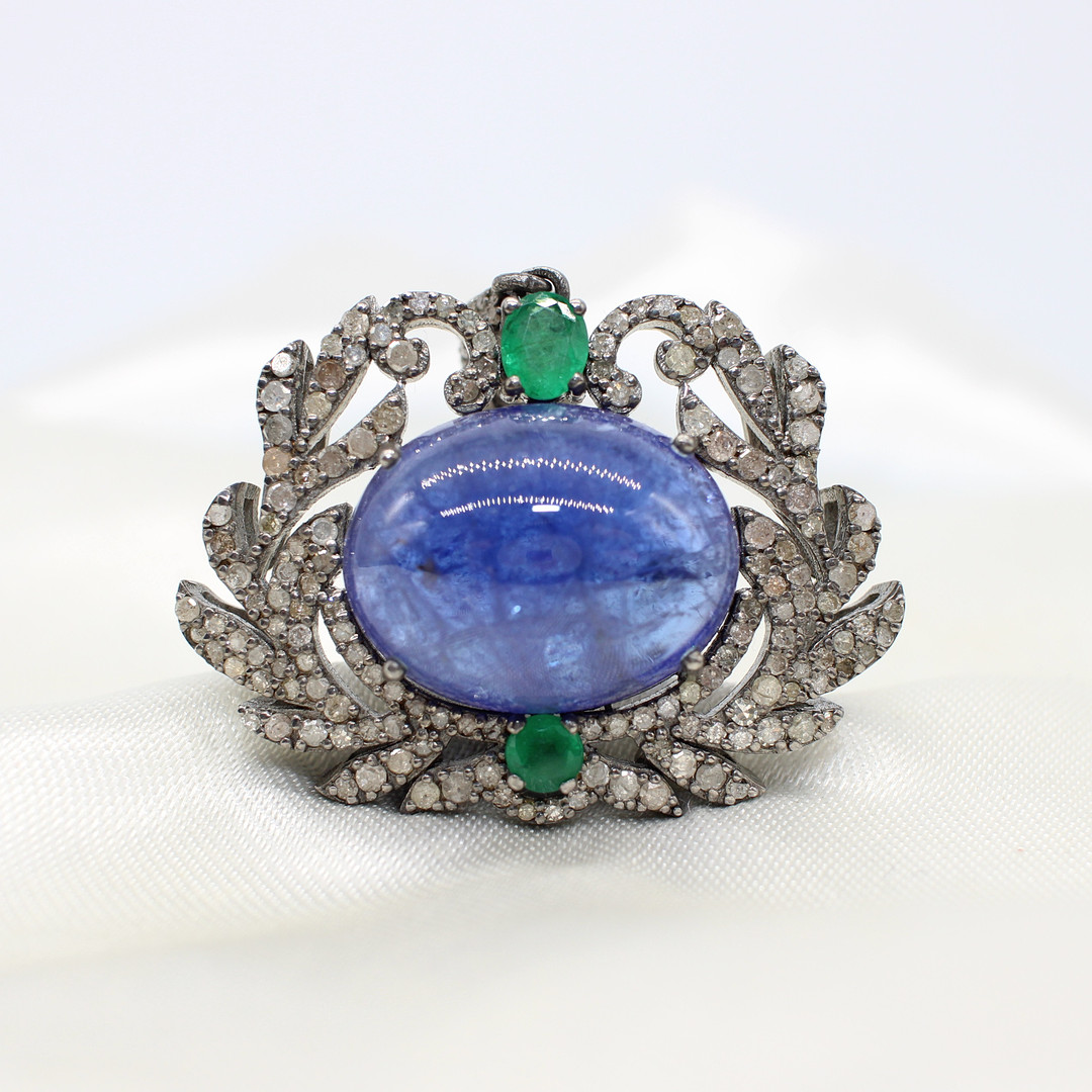 4938566. ANHÄNGER AUS TANSANIT, SMARAGD UND DIAMANT.