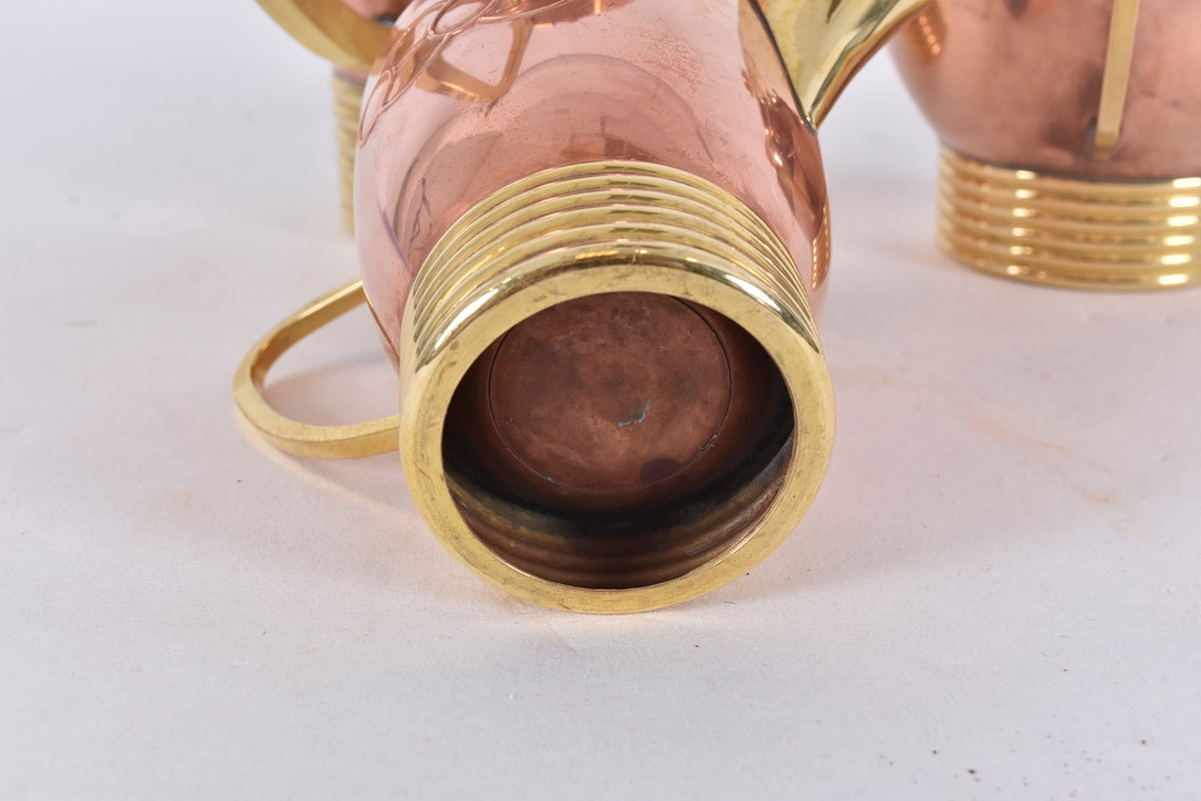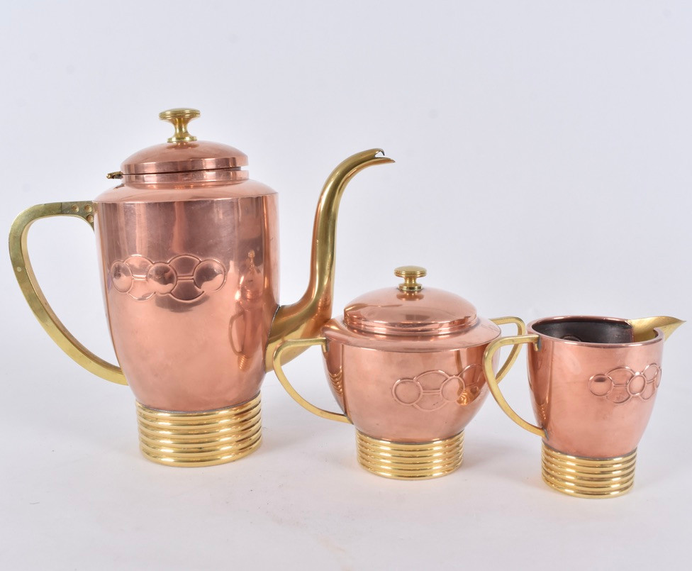 4947700. KAFFEESET, 3-teilig, Kupfer/Messing, Jugendstil.