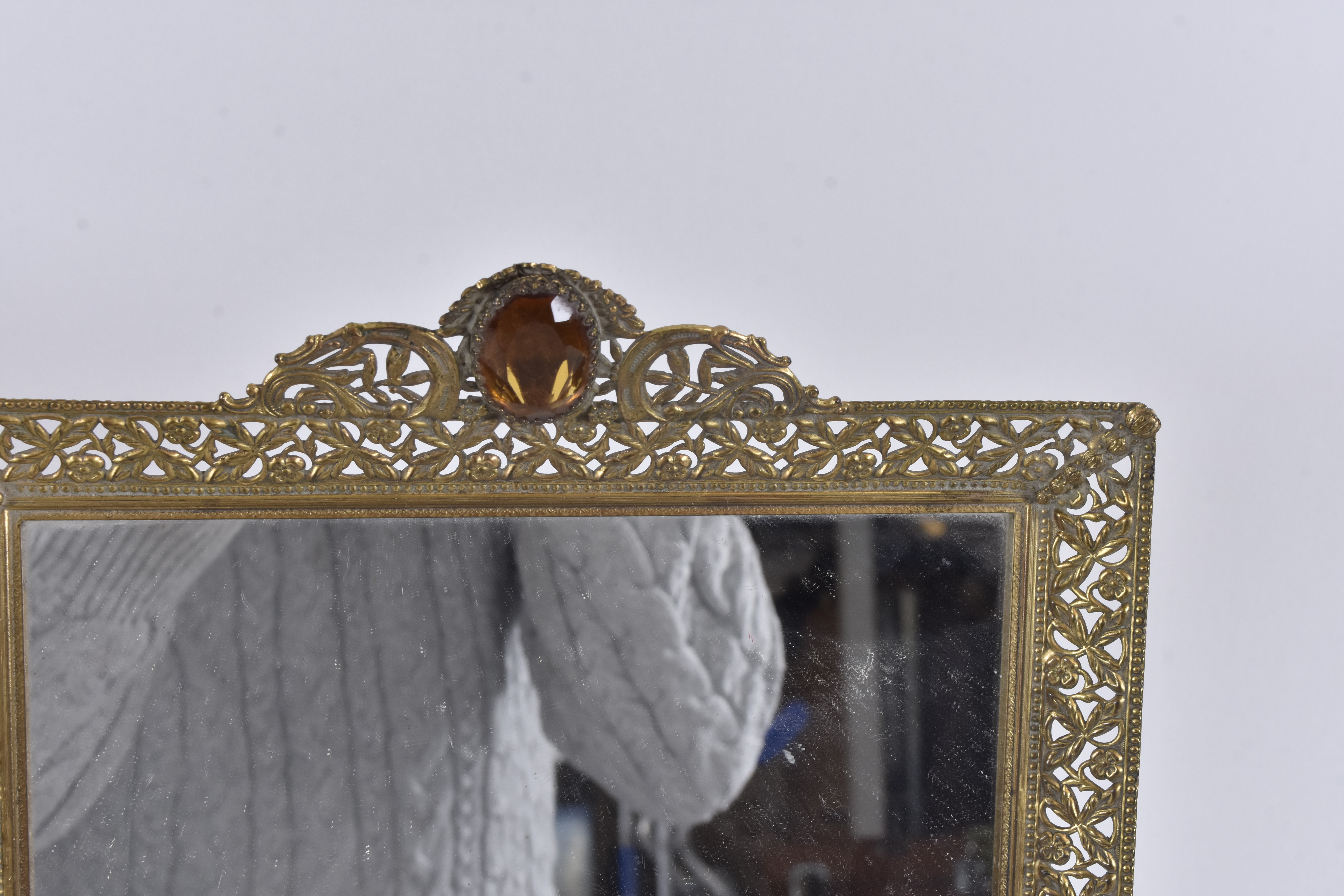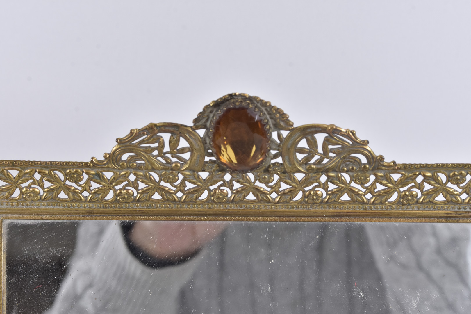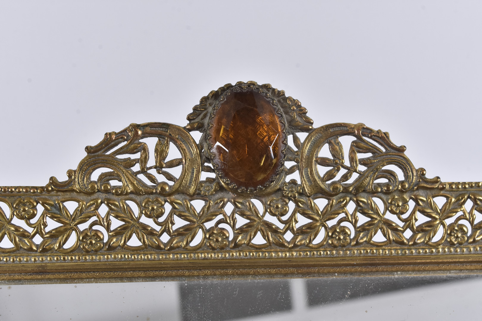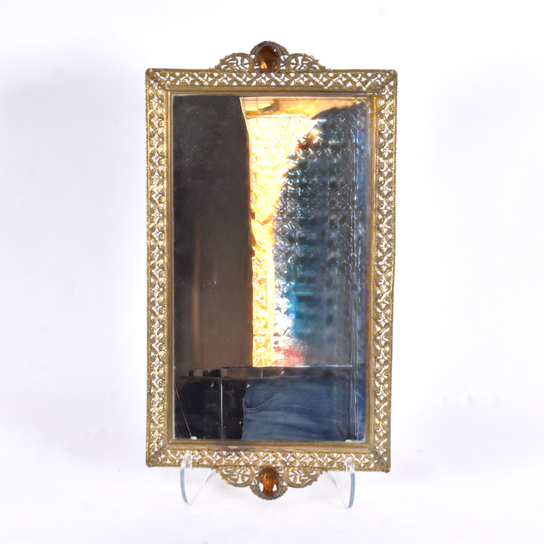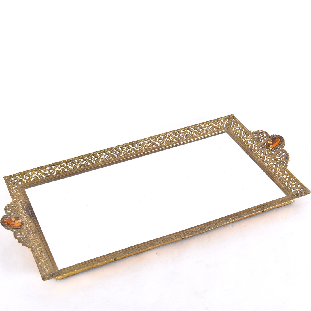 4950816. SPIEGELSCHALE; Messing mit Glasfluss.