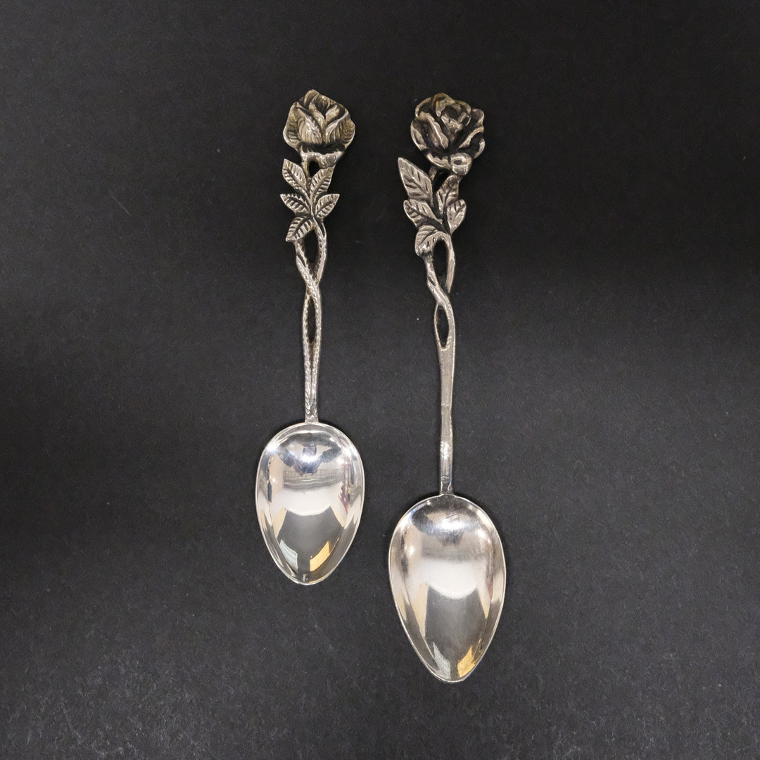 4952987. KAFFEE- UND MOKKALÖFFEL, „ROSE“, SILBER, 24 STÜCK.
