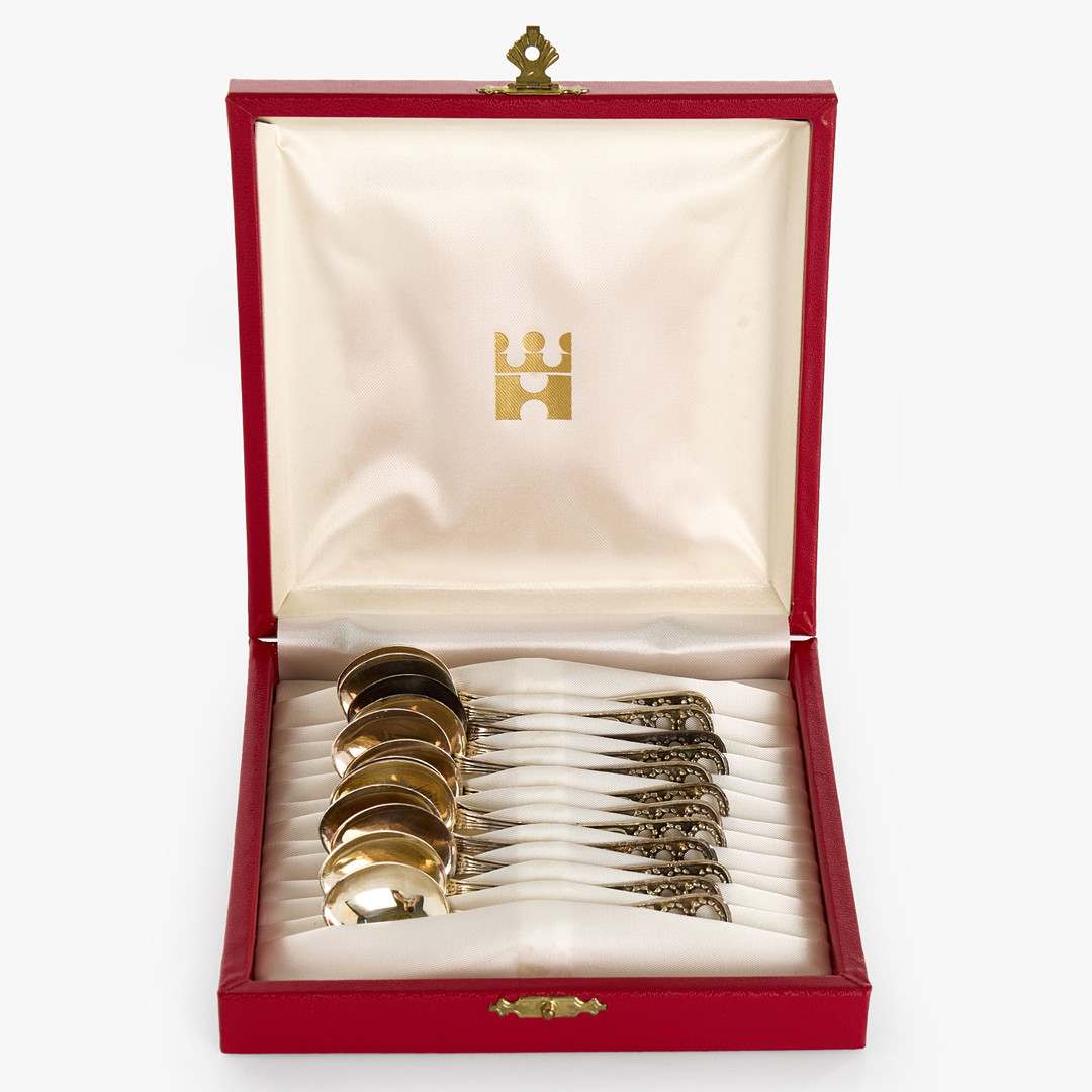 4956406. Ein Satz von 12 Kaffeelöffeln, Silber, GEWE, Malmö.