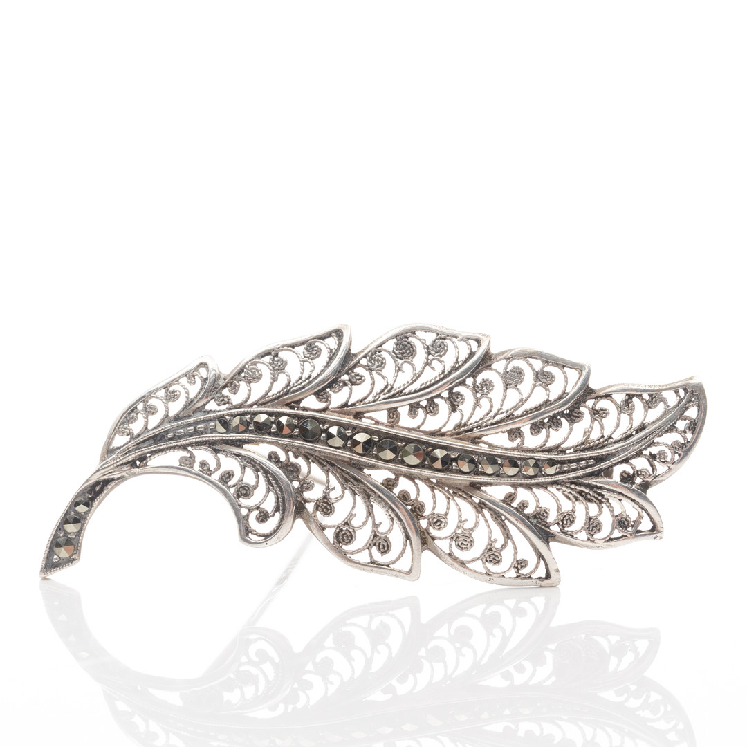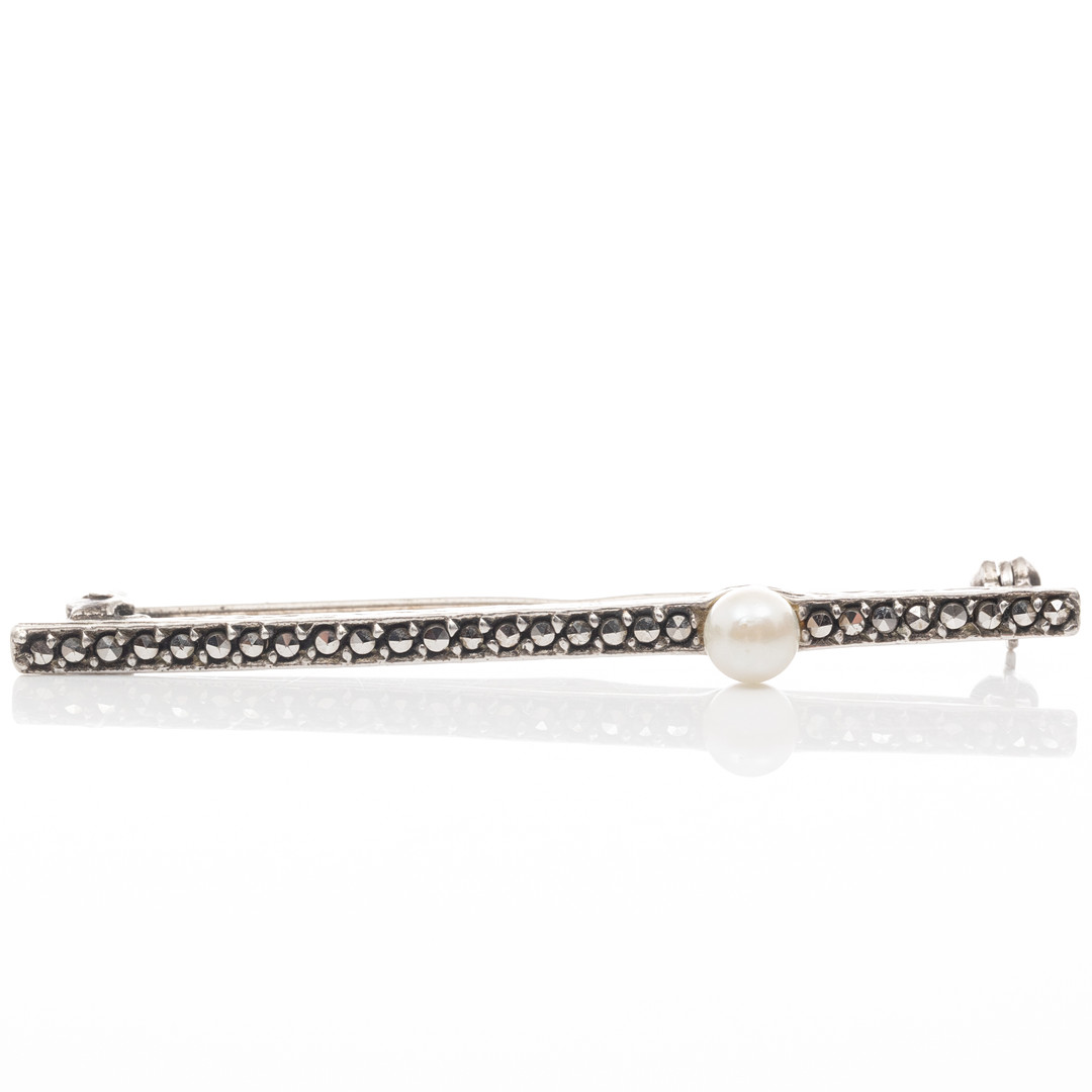 4957200. BROSCHEN, 4 Stück, Silber, Markasite, Perle.