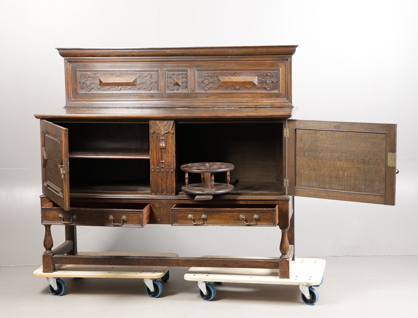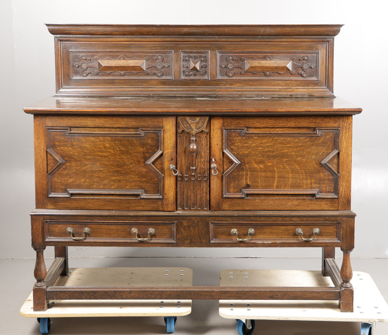 4957232. EIN SIDEBOARD AUS EICHENHOLZ AUS DEM FRÜHEN 20. JAHRHUNDERT.