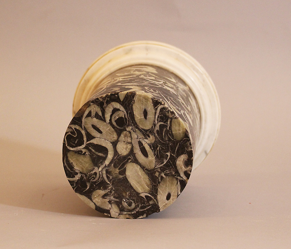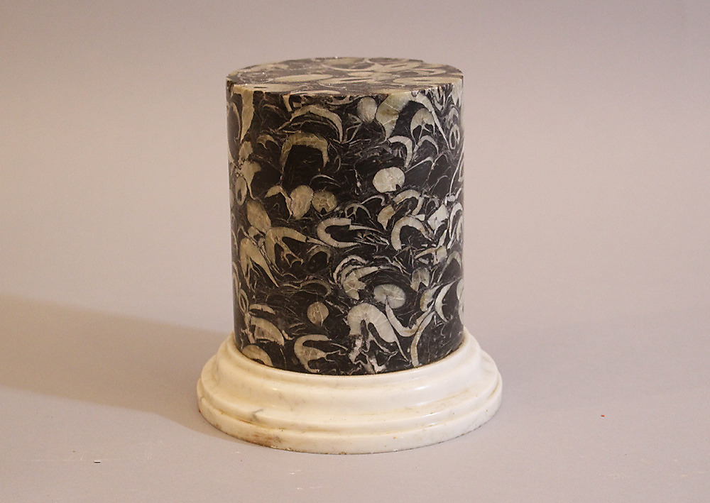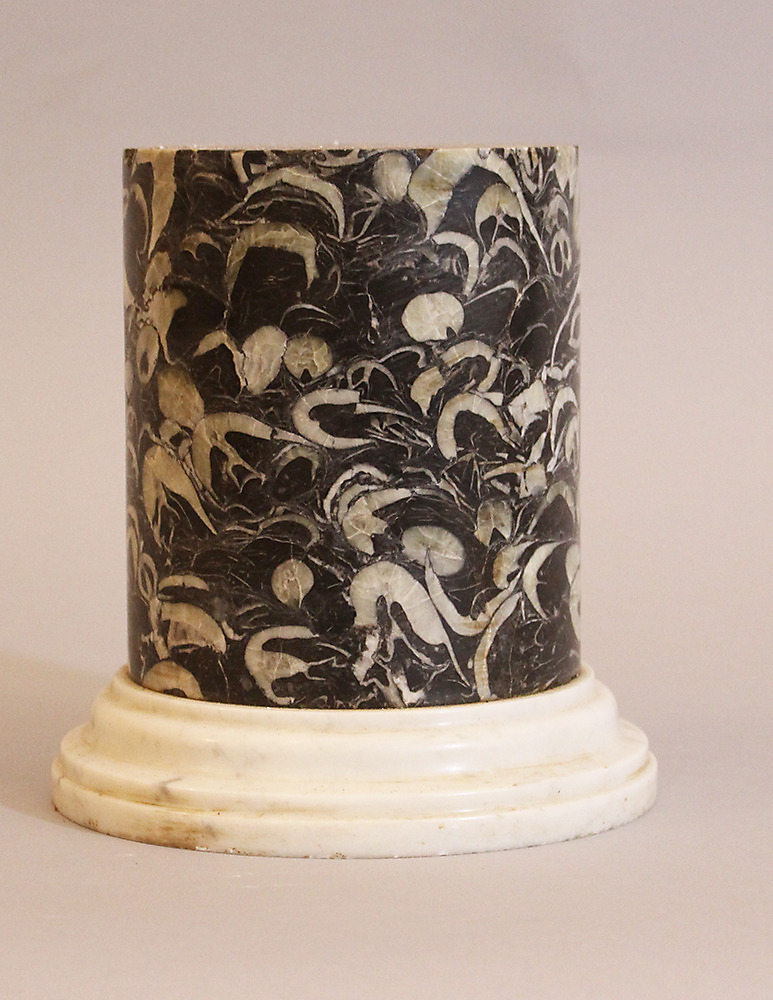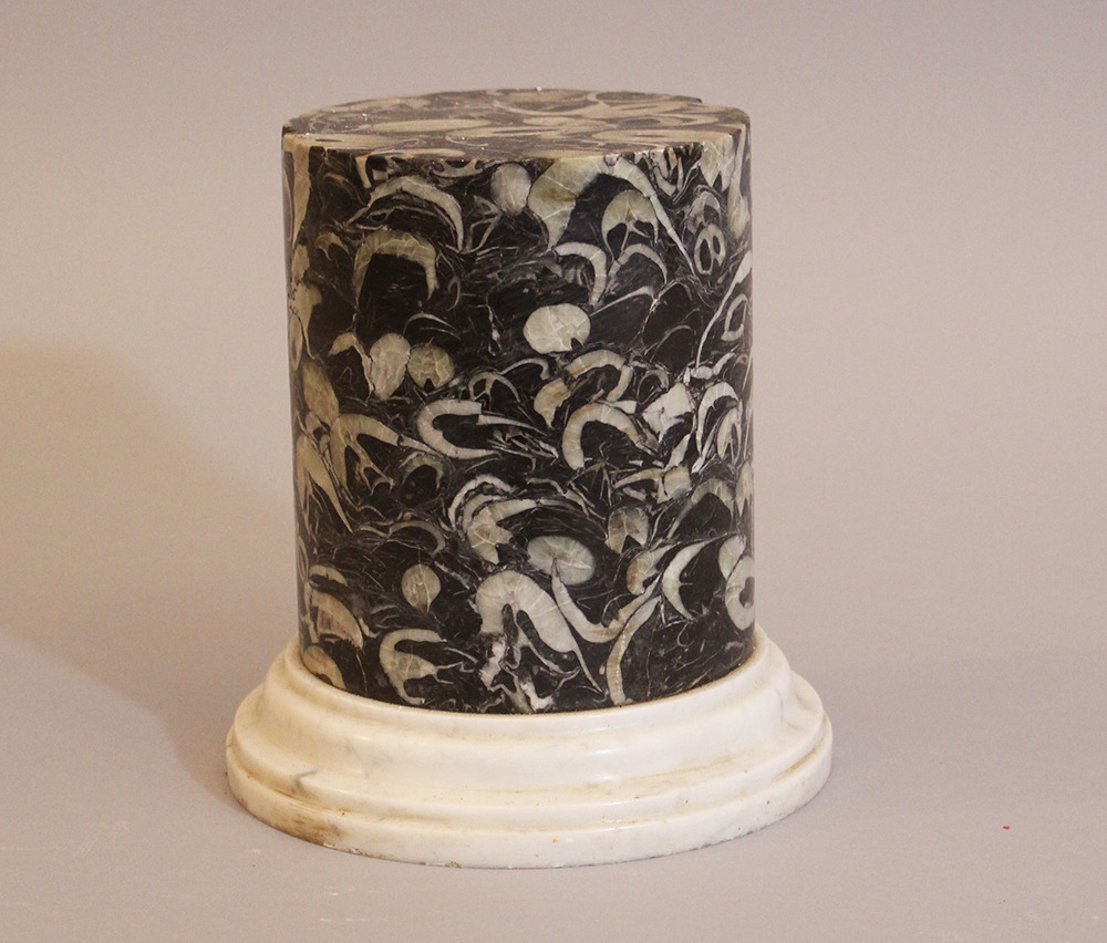 496276. MARMOR SÄULENBASIS MIT FOSSILIEN.