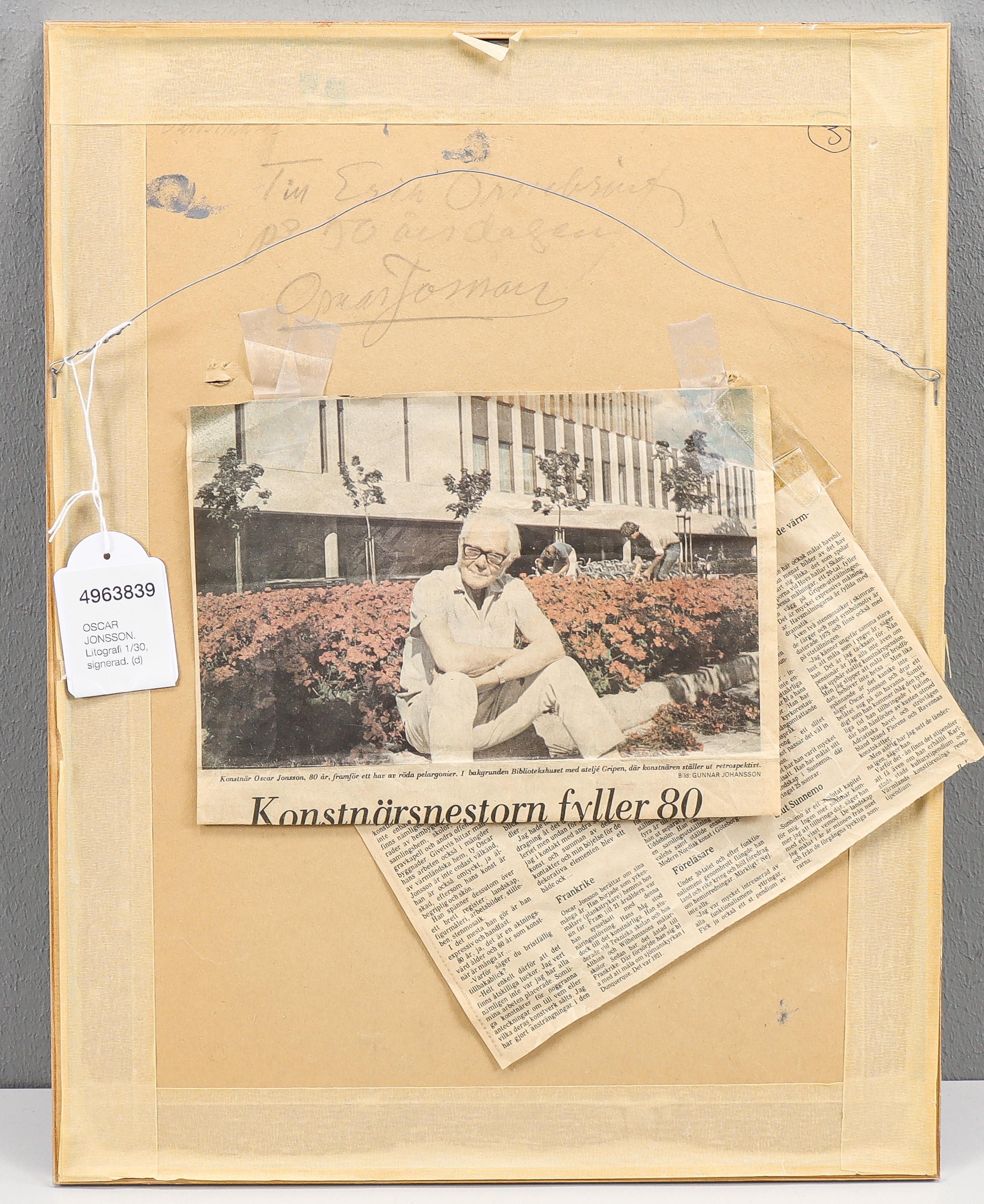 4963839. OSCAR JONSSON. Lithografie 1/30, signiert.