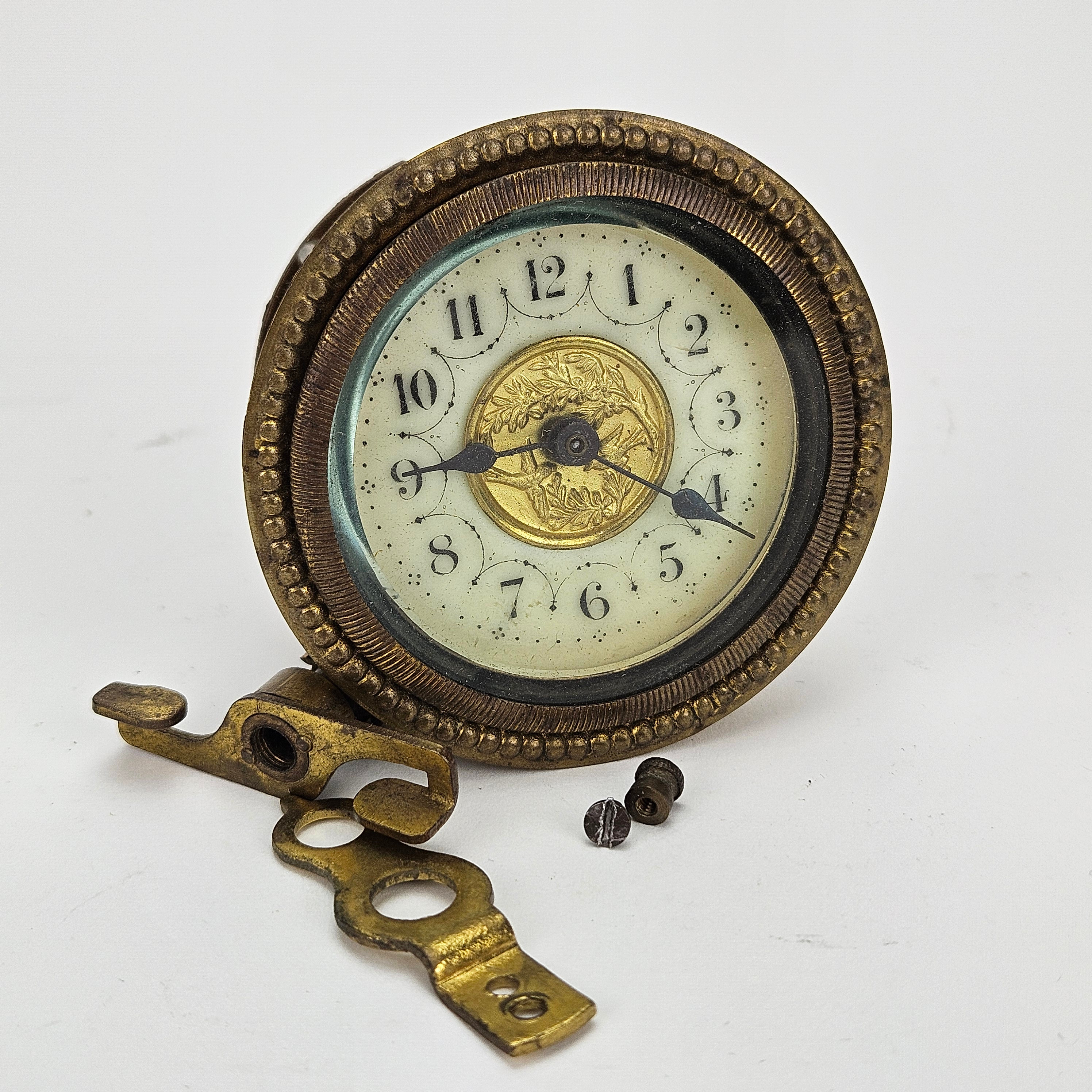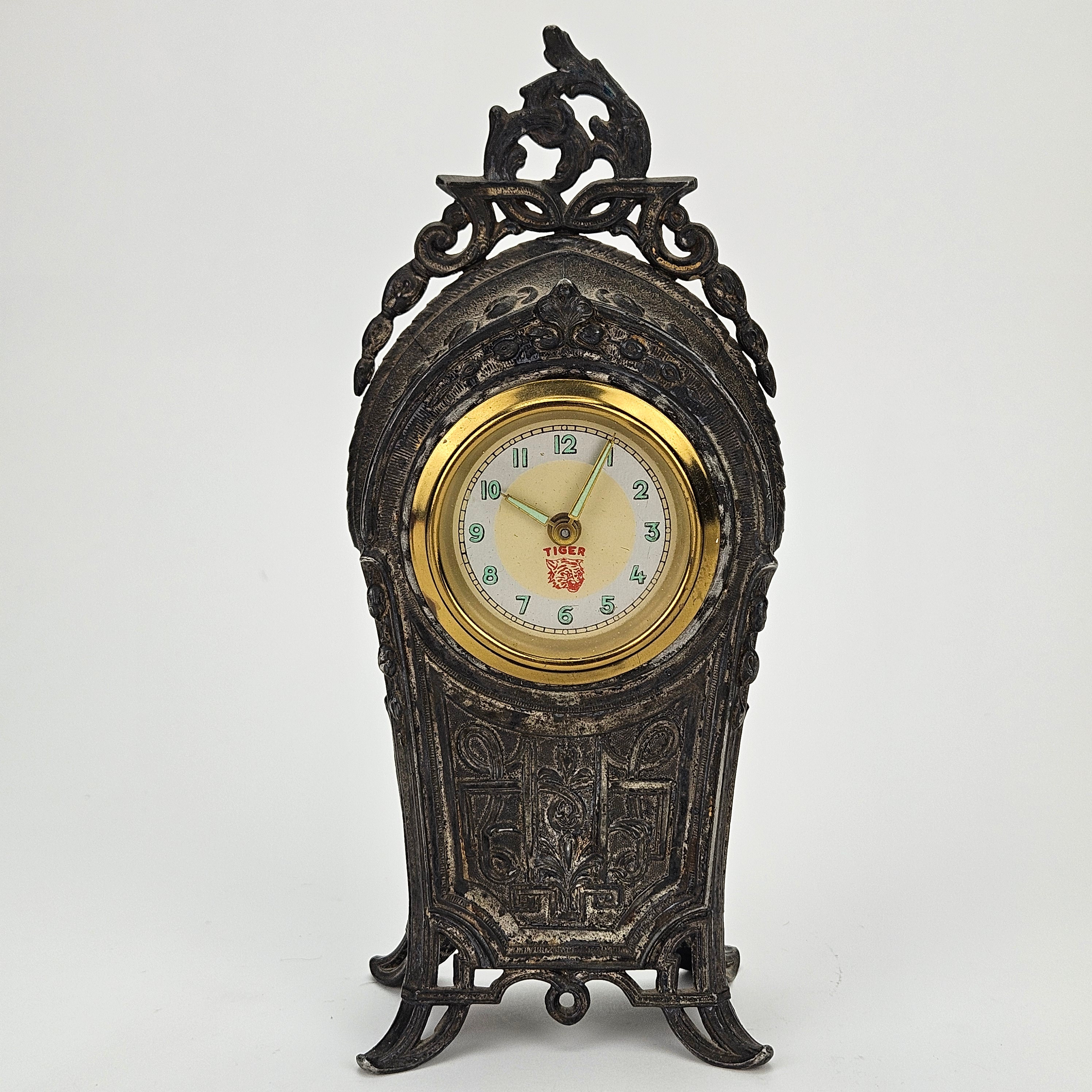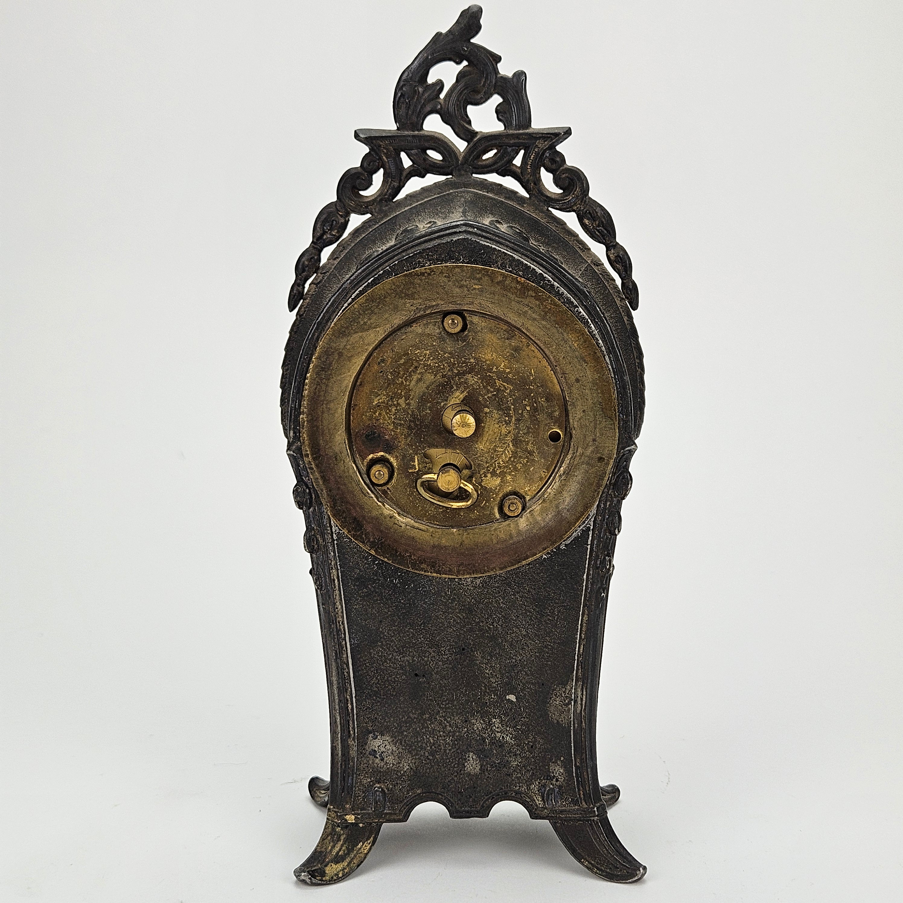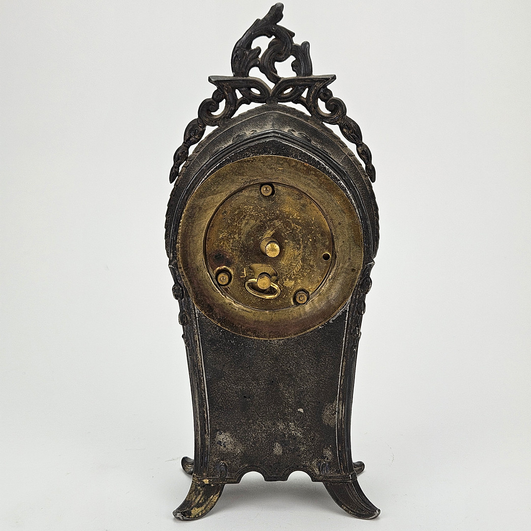 4967003. Eine Tischuhr aus Metall, um 1900.