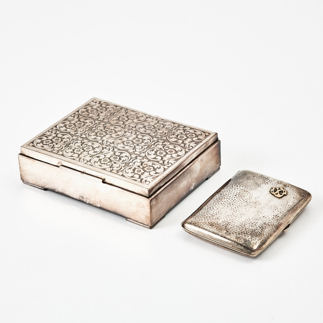 4970918. ZIGARETTE- und ZIGARRETUI, Silber, schwedische Importmarken.