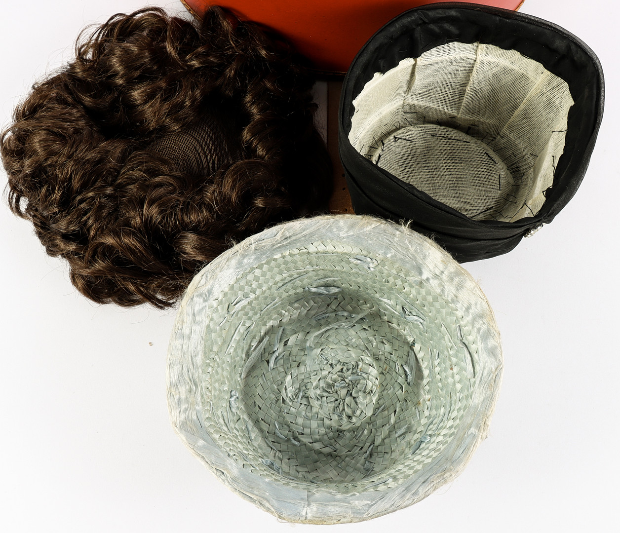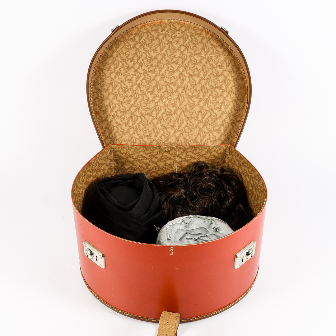 4976267. HUTBOX mit 2 Damenhüten und Perücke.