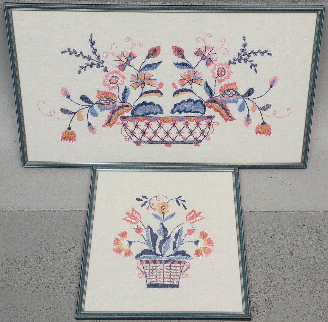 4978137. GEMÄLDE, 2 Stück, Blekingesüm, Textil-, Glas- und Holzrahmen.