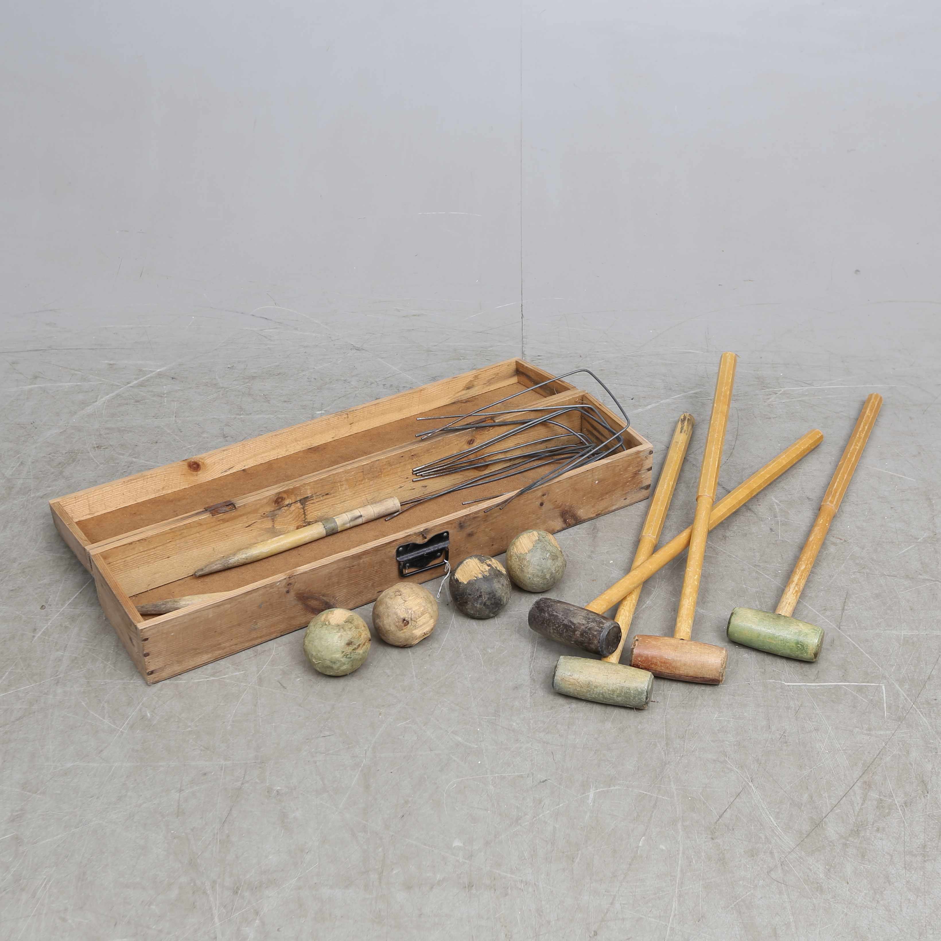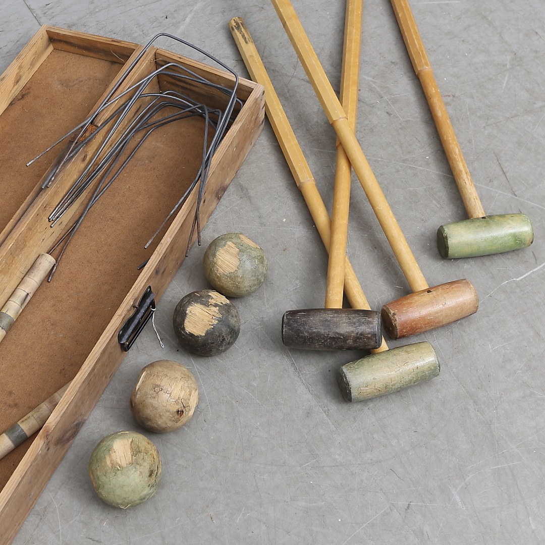 497891. CROCKET GAME, in einer Holzkiste, Mitte des 20. Jahrhunderts.