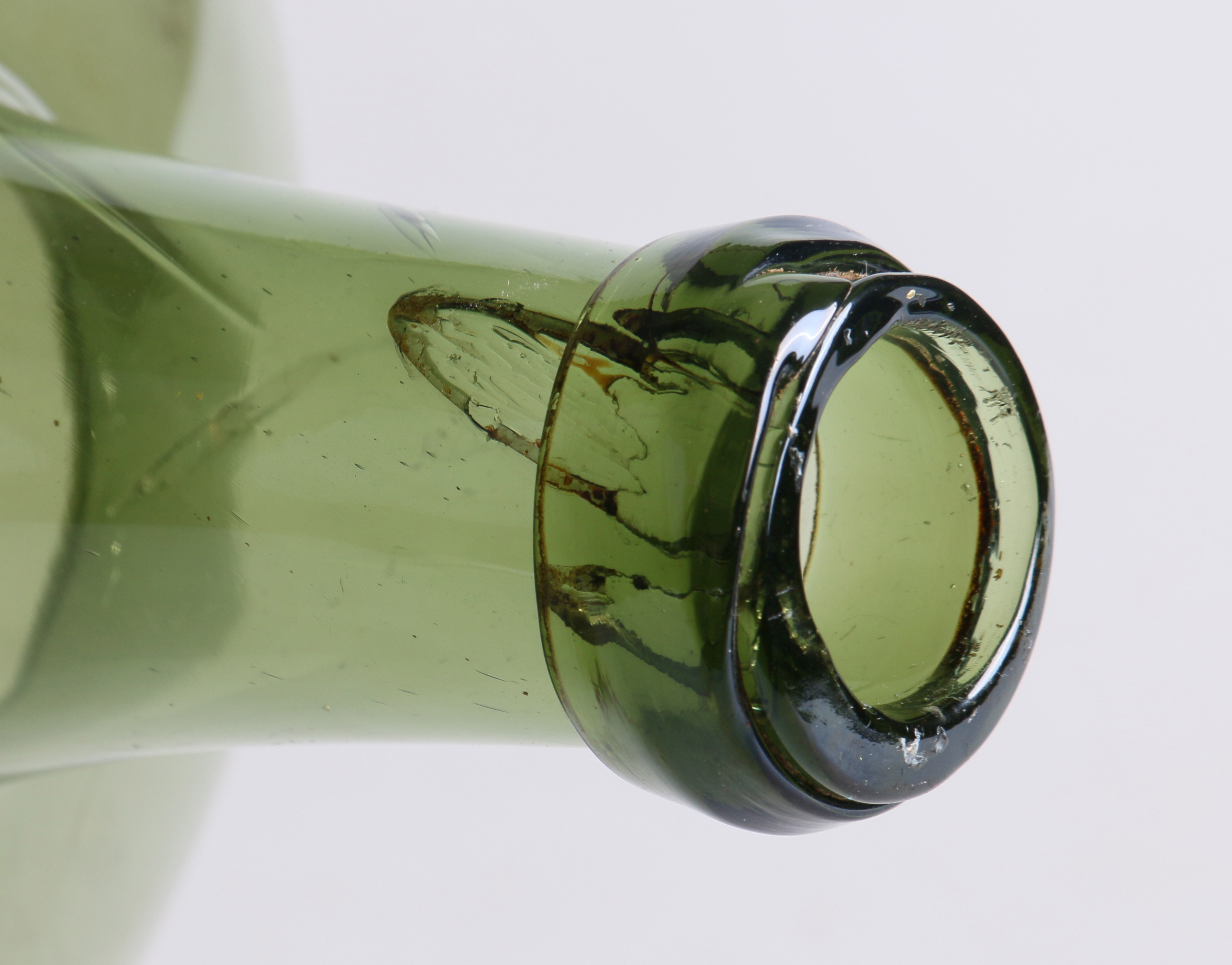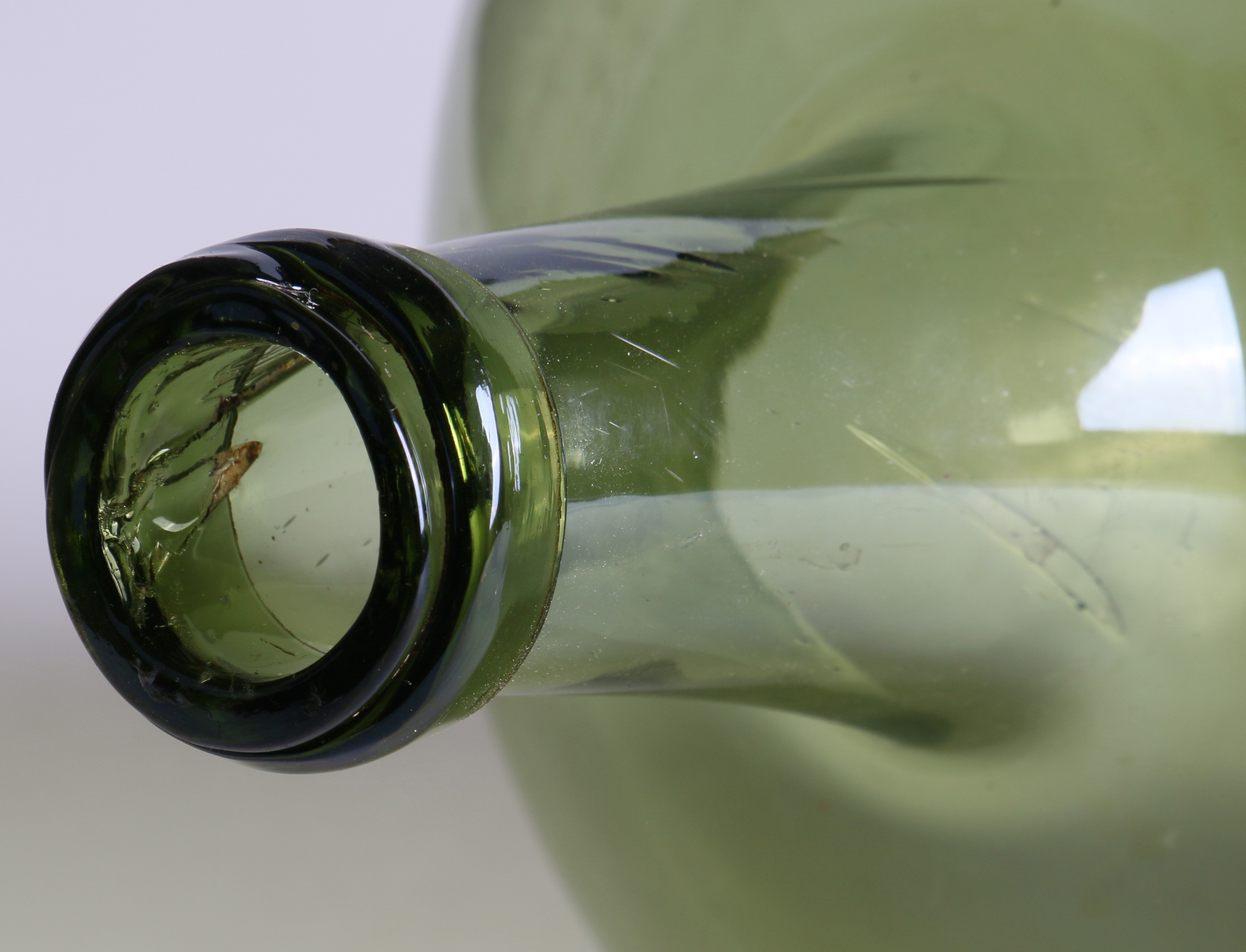 497983. FLASCHE, grüne Glasmasse, 18./19. Jahrhundert.