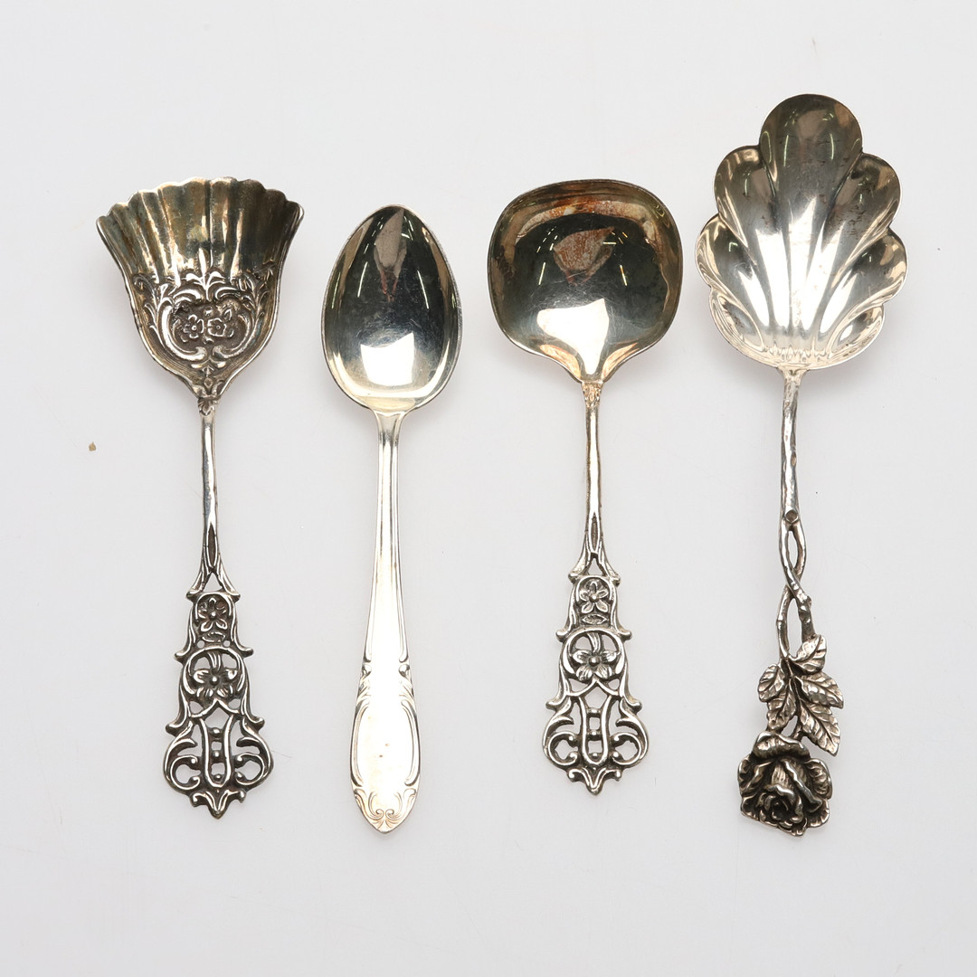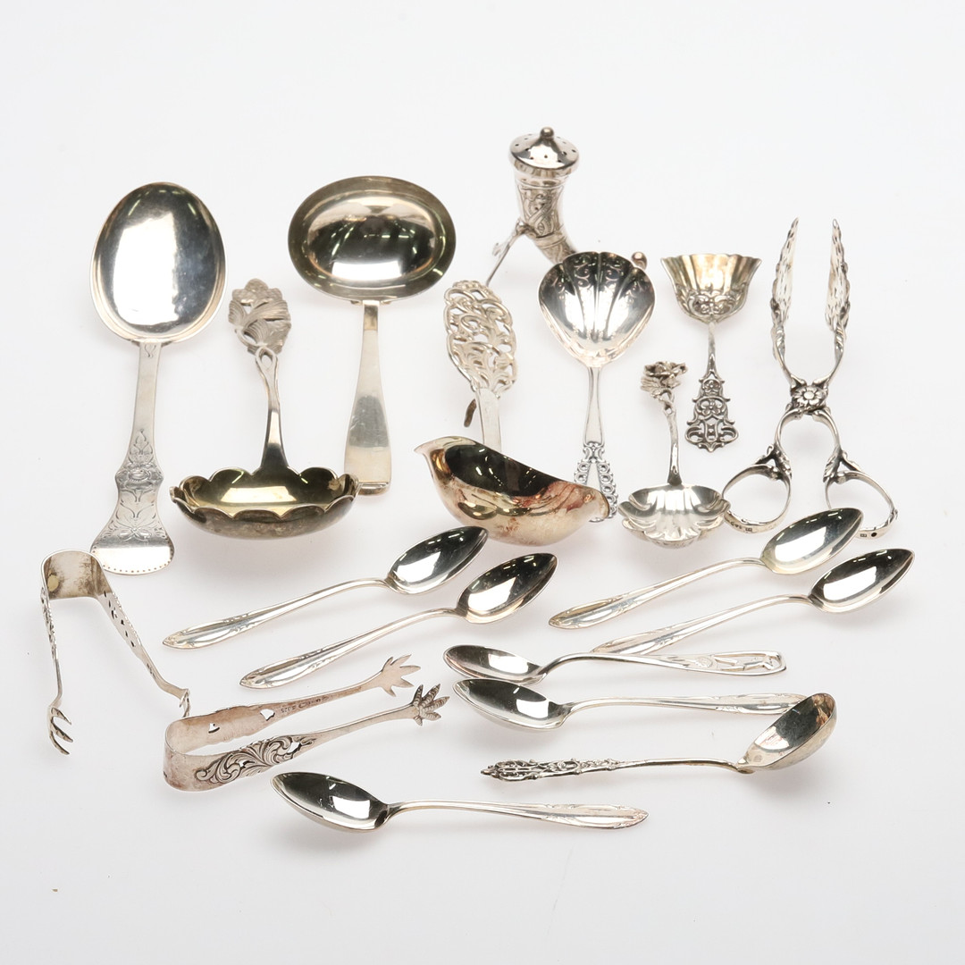 4982541. SILBER. POSTEN SIE SORTIERTES BESTECK SOWIE EINE SALZWANNE.