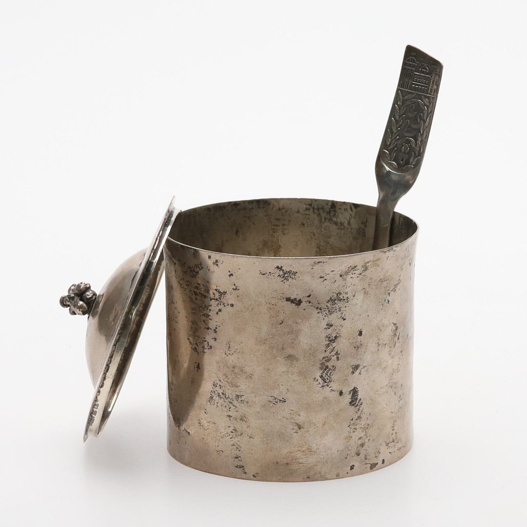 4982629. Glas mit Deckel und Löffel, Silber, 175 Gramm.