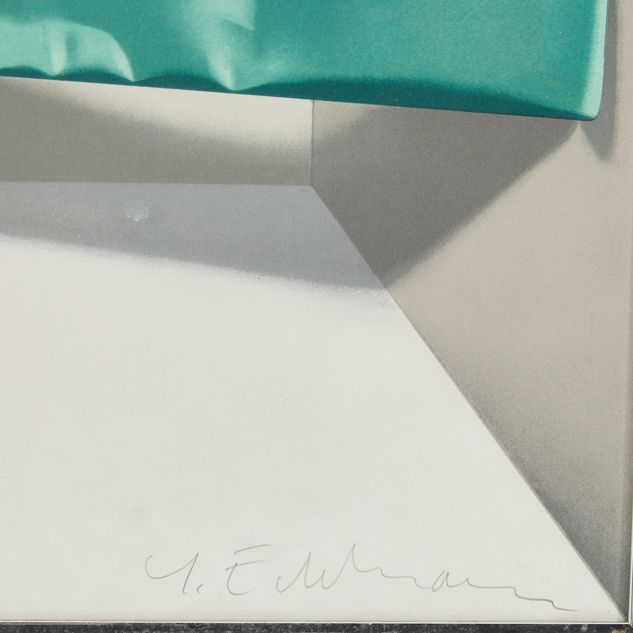 YRJÖ EDELMANN. Komposition auf Papier, Farblithografie, signiert.
