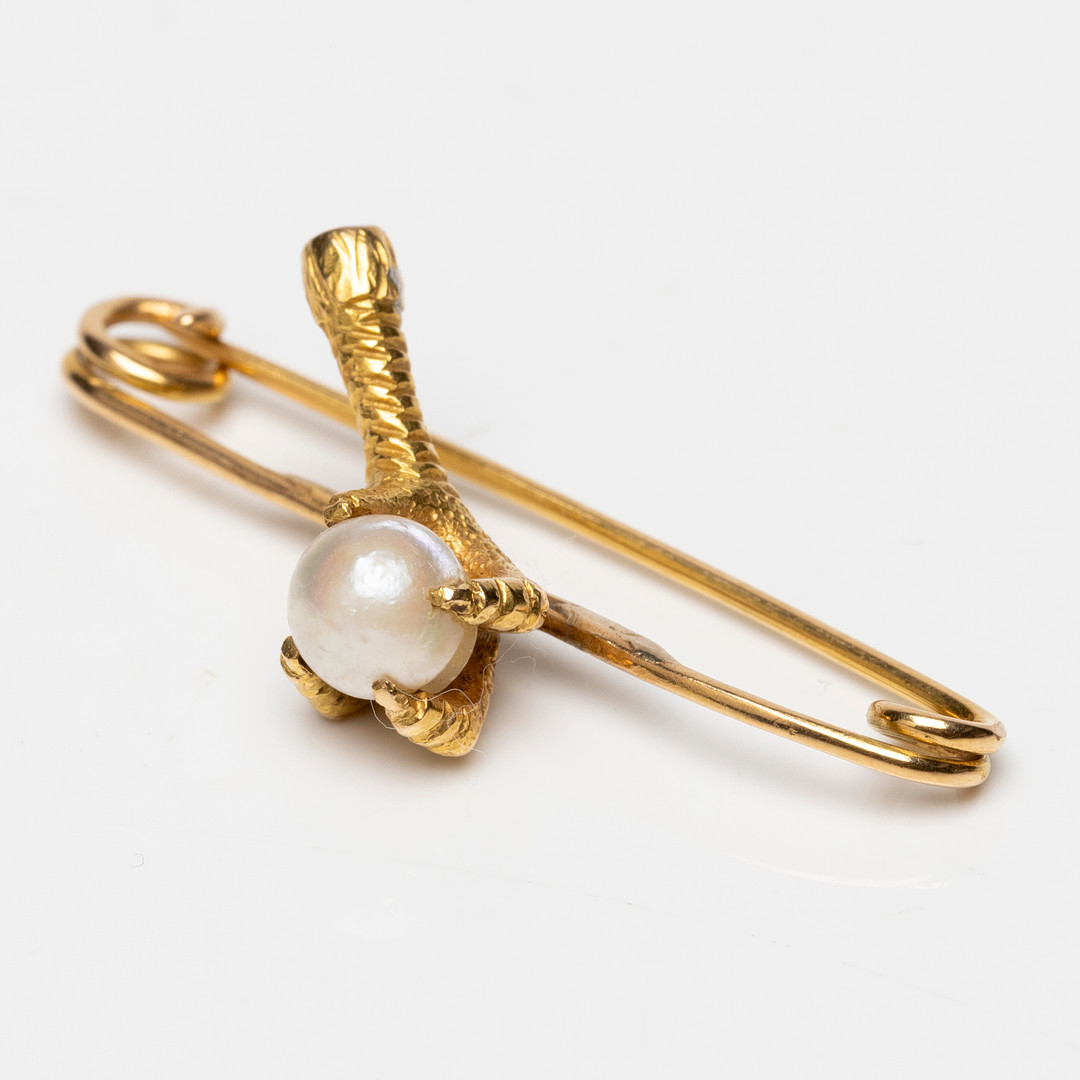4987062. Eine Brosche, Gold, 18 Karat und Perle.