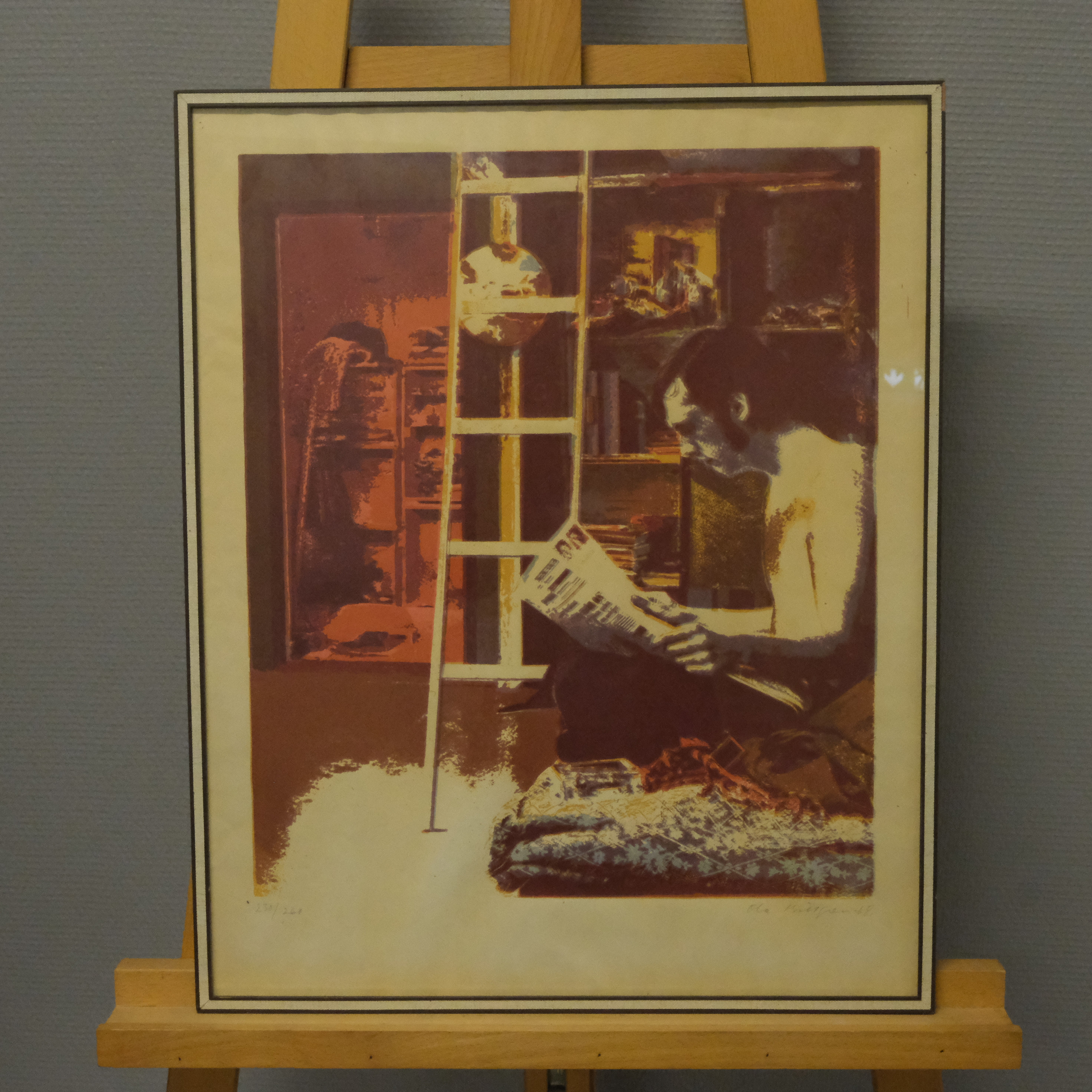 4987103. OLA BILLGREN. MANN MIT ZEITUNG, LITHOGRAFIE.
