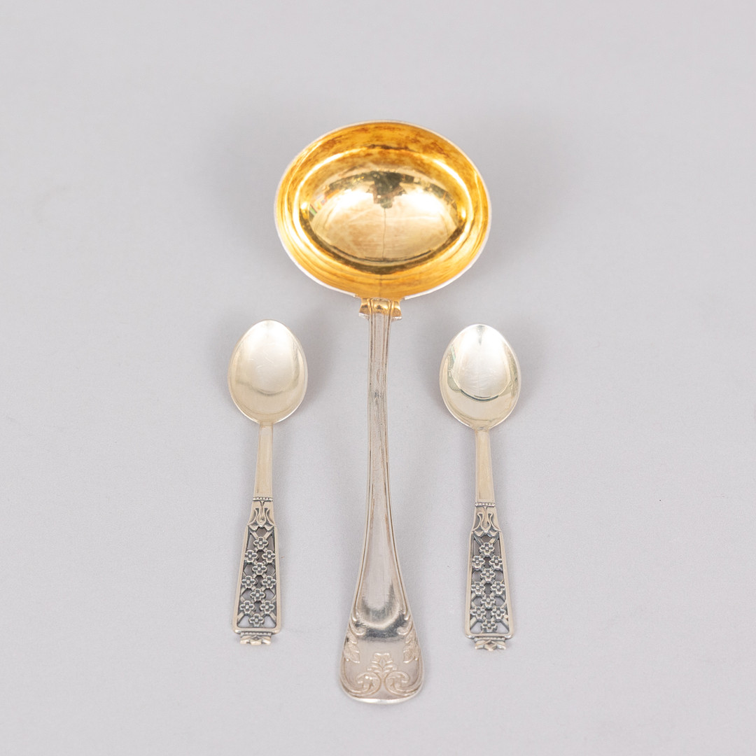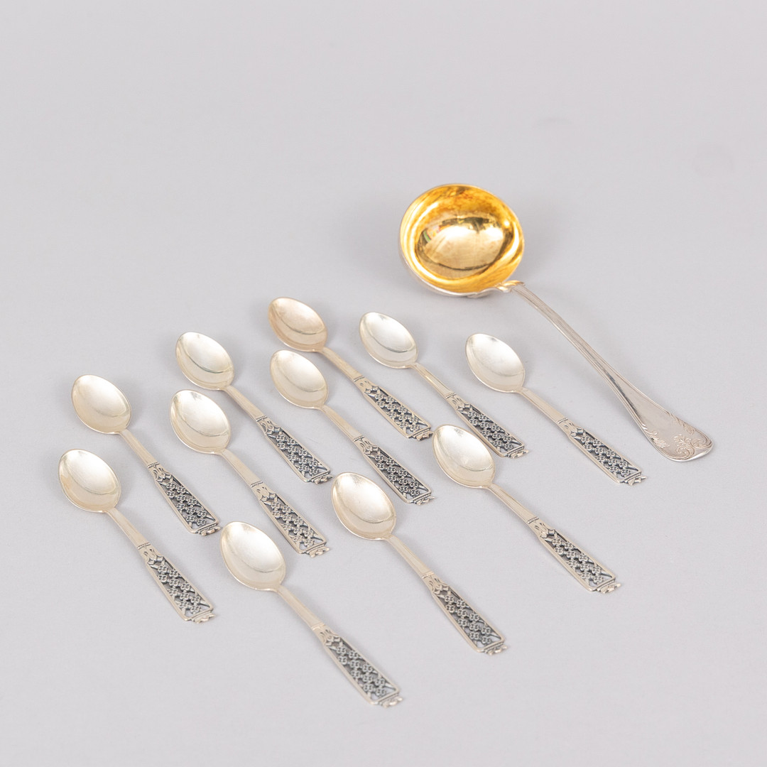 4987654. KAFFEELÖFFEL UND SAUCENLÖFFEL, SILBER, 12 Stück.