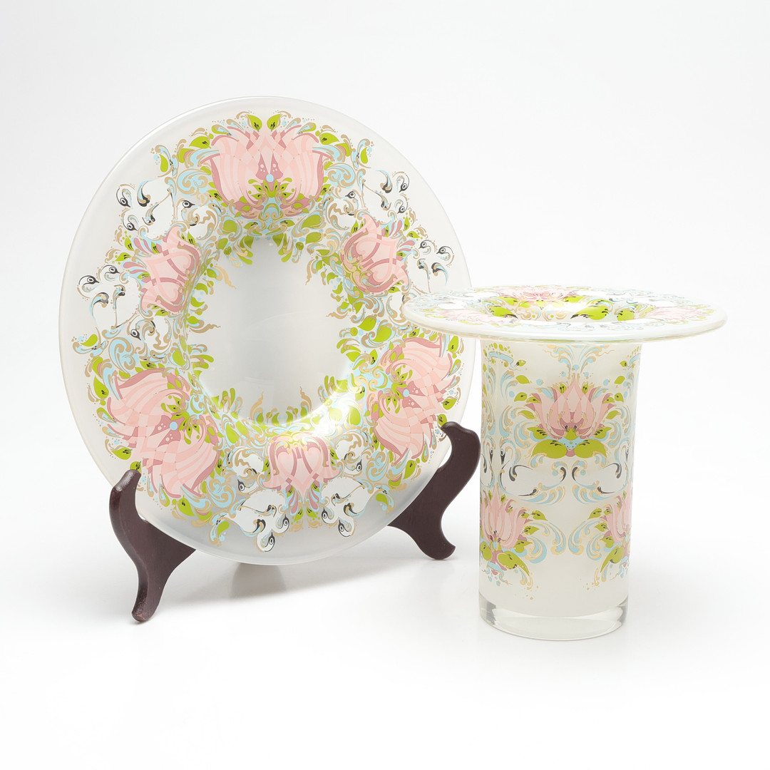 4987916. Eine Schale und eine Glasvase, Rosenthal.