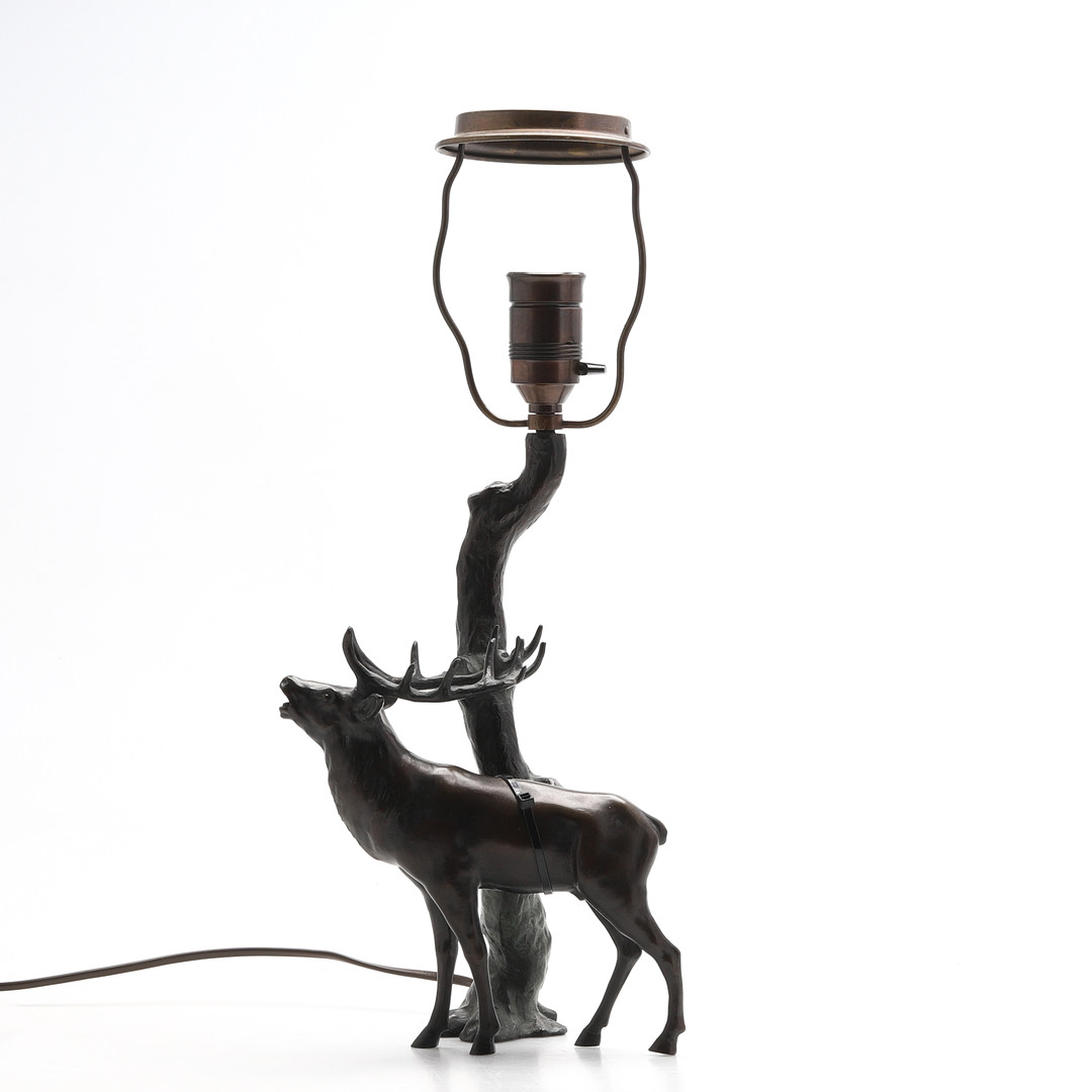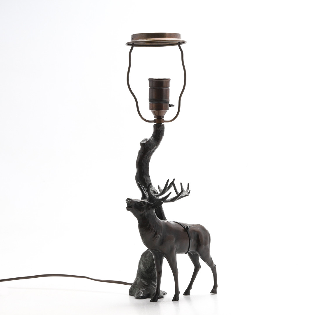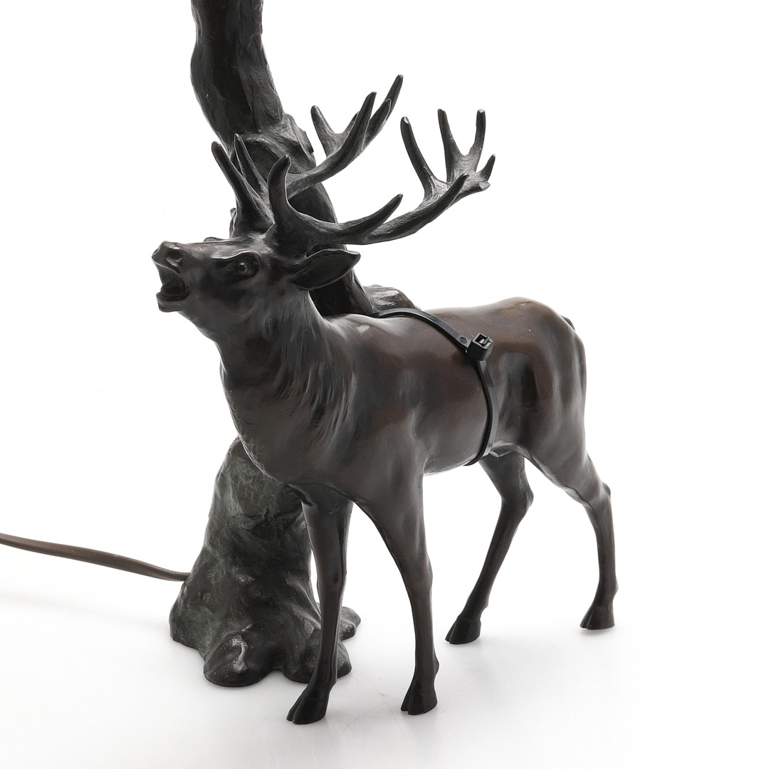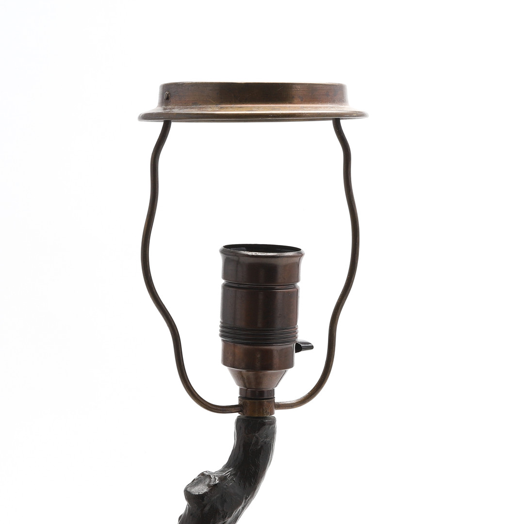 4989331. Tischlampe, bronzefarbenes patiniertes Metall.