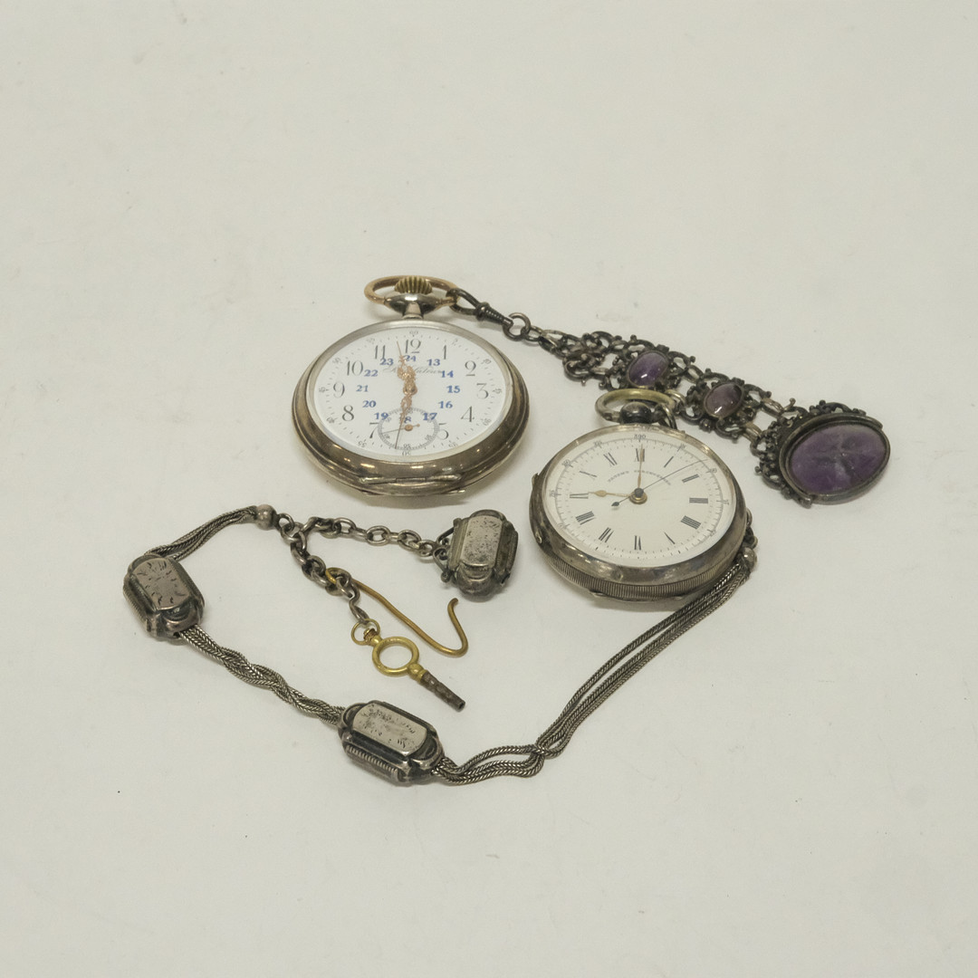 4990253. ZWEI TASCHENUHREN. SILBERGEHÄUSE.
