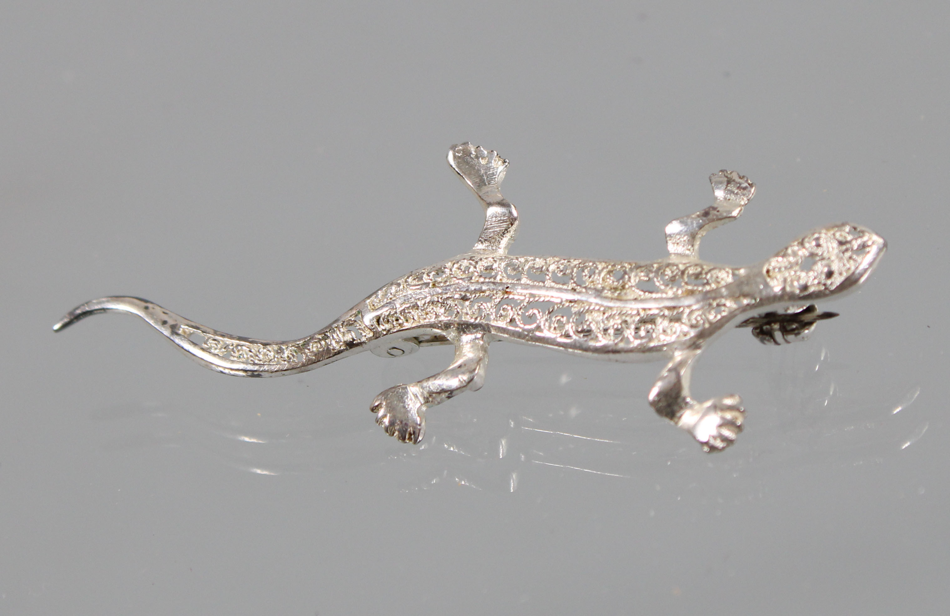 4993130. ANTIKE BROSCHE SALAMANDER, Eidechse, Silber 835.