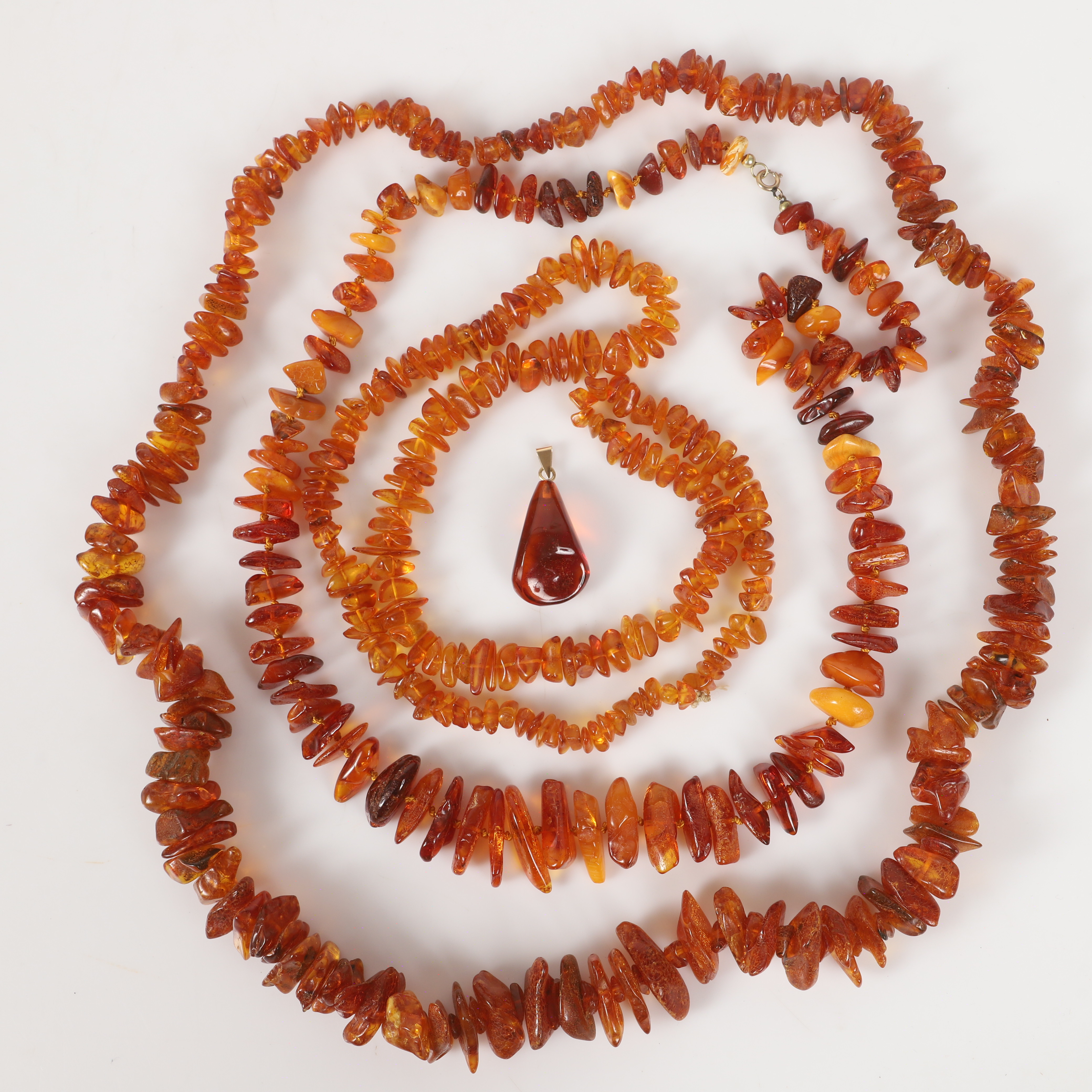 4993929. COLLIER UND ANHÄNGER, 4 Stück, Bernstein.