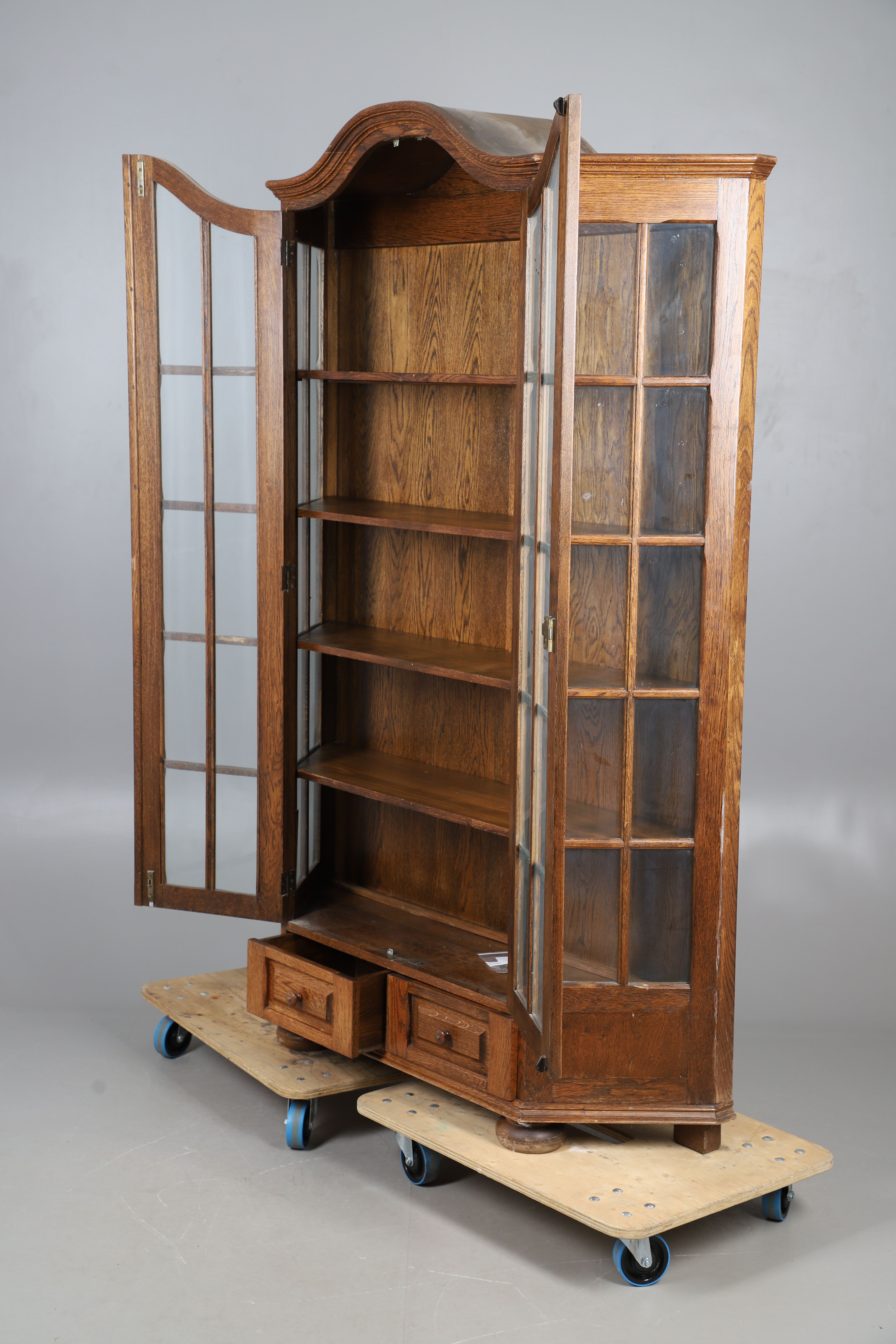 4995866. EIN VERGLASTER EICHENSCHRANK.