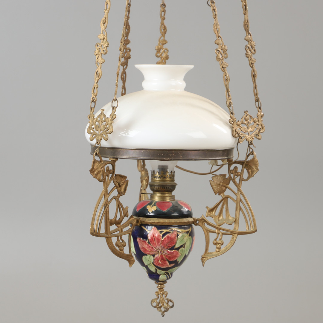 5000558. FOTOGENE DECKENLAMPE, Majolika, Jugendstil.