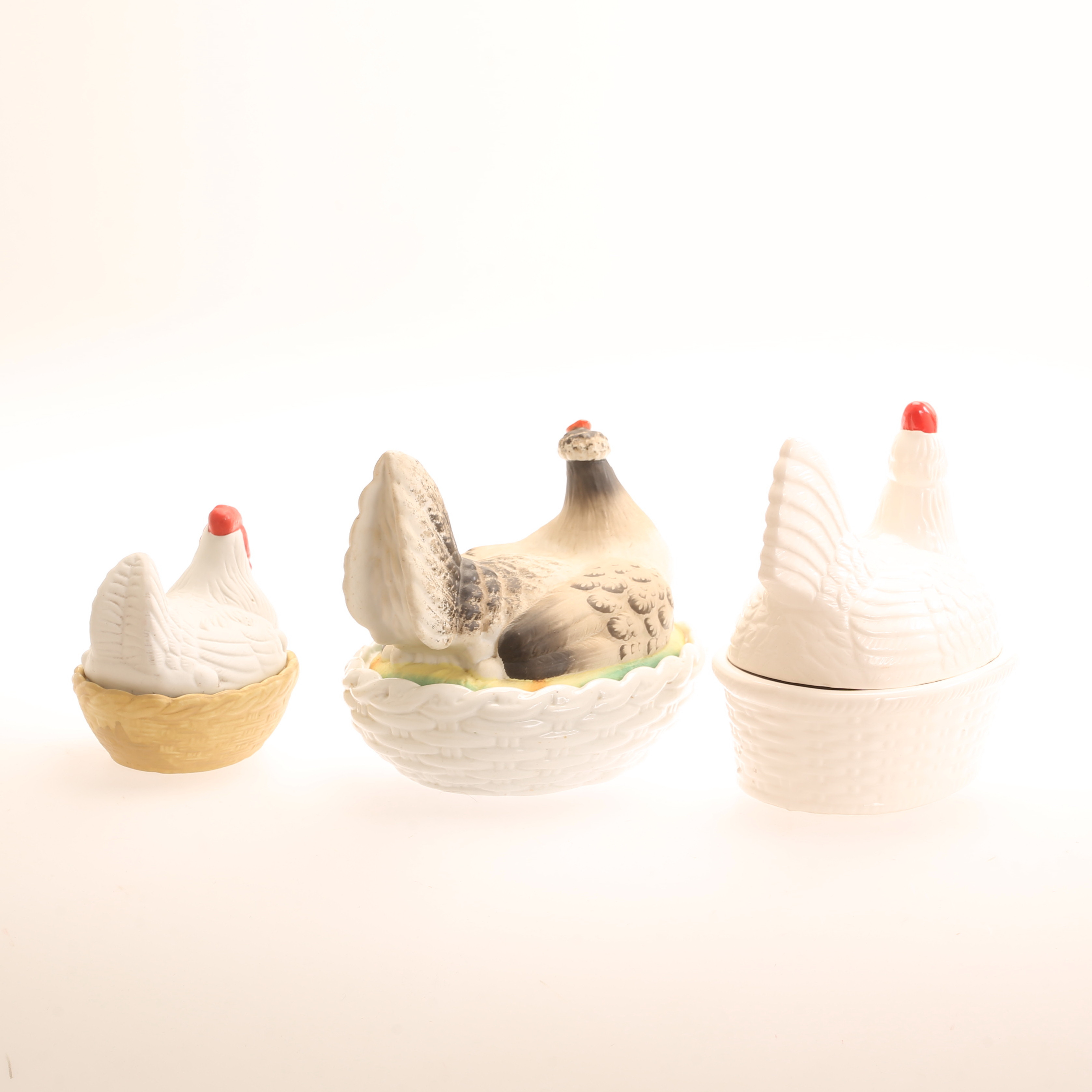 5002546. EIERHÜHNER, 3 Stück, Porzellan.