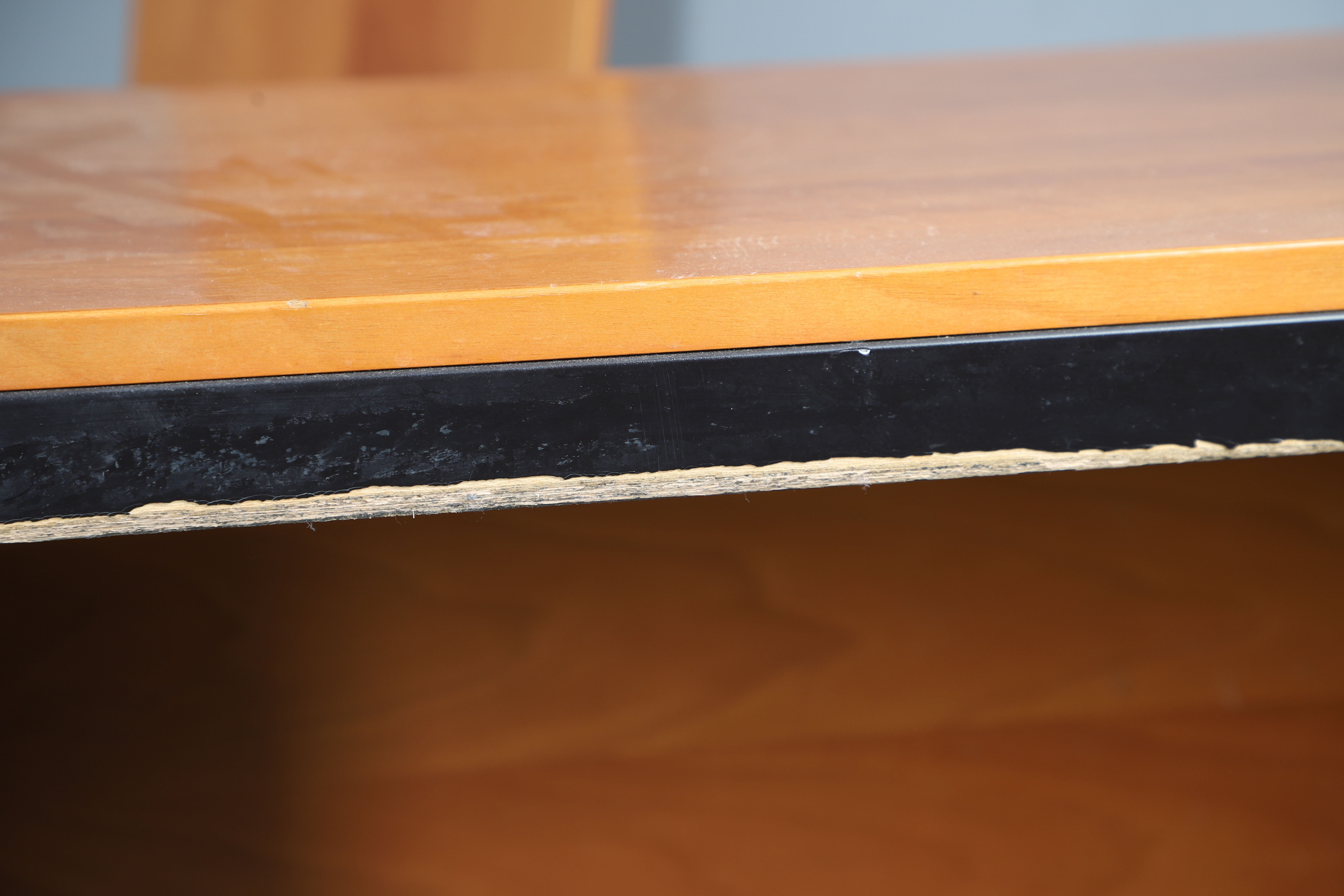 5002737. EIN GROSSER SCHREIBTISCH IN KIRSCHHOLZ-OPTIK.