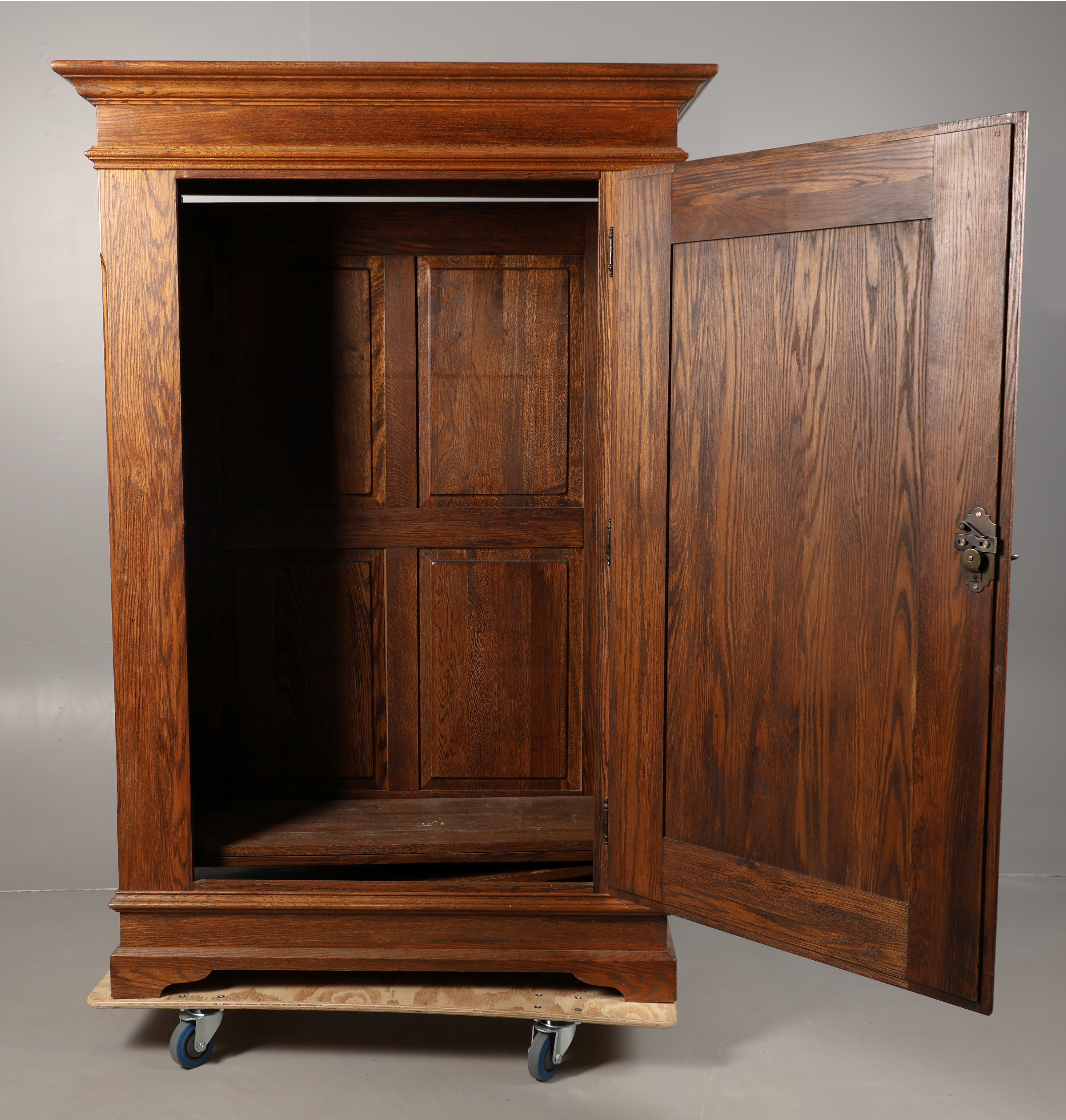 5004437. EIN EINTÜRIGER EICHENSCHRANK AUS DEM 20. JAHRHUNDERT.