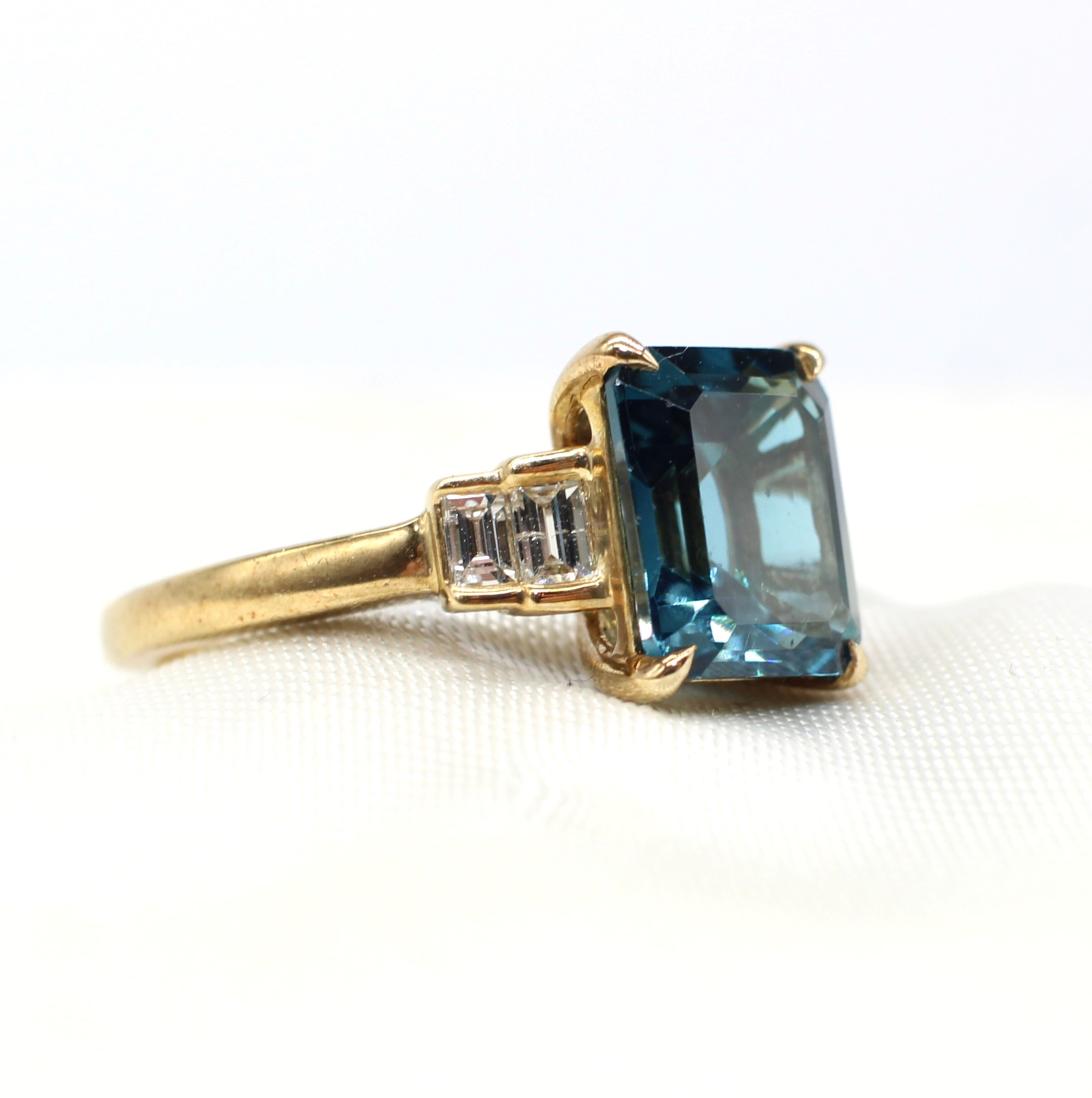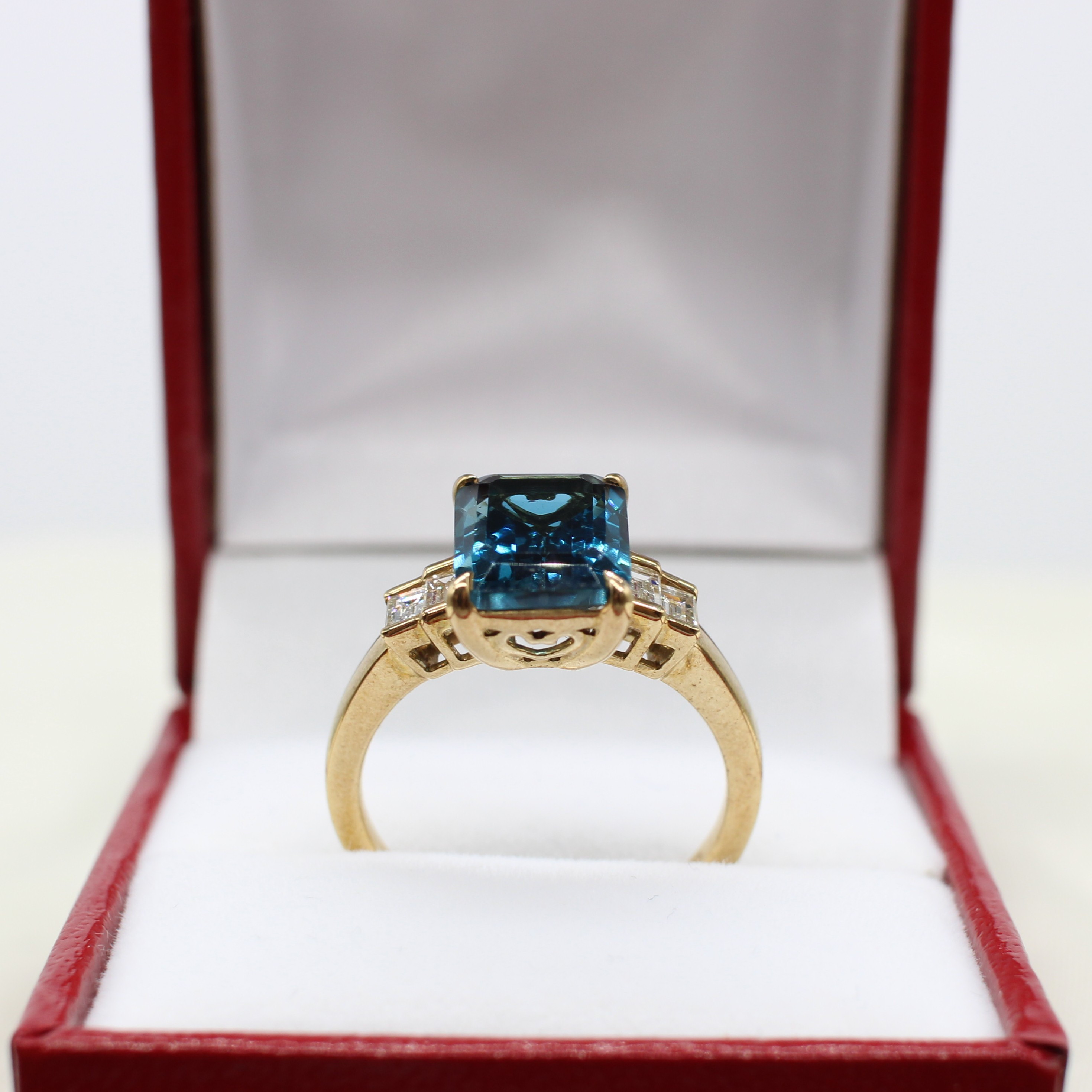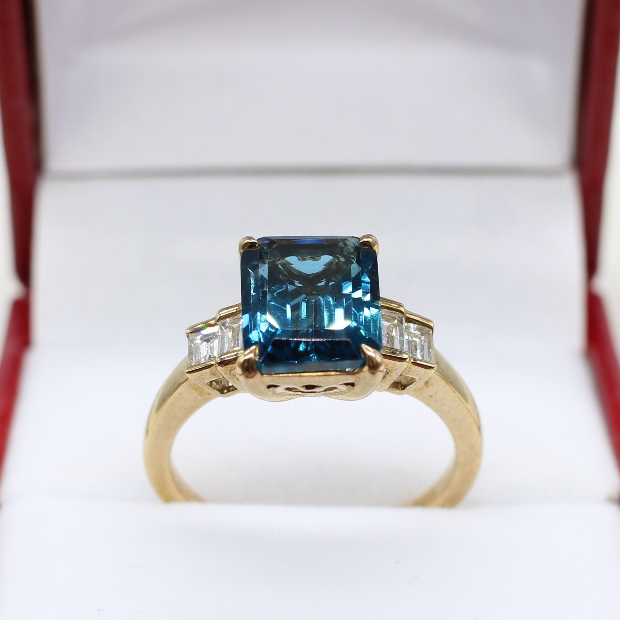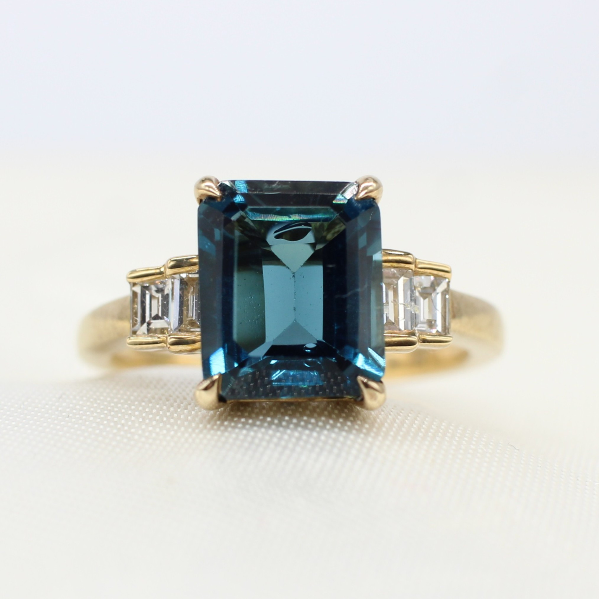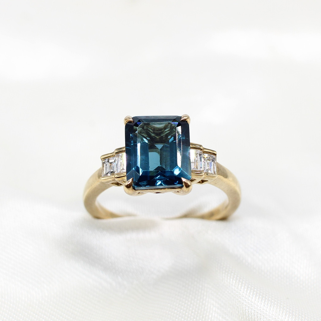 5005396. LONDONER RING MIT BLAUEM TOPAS UND DIAMANT.