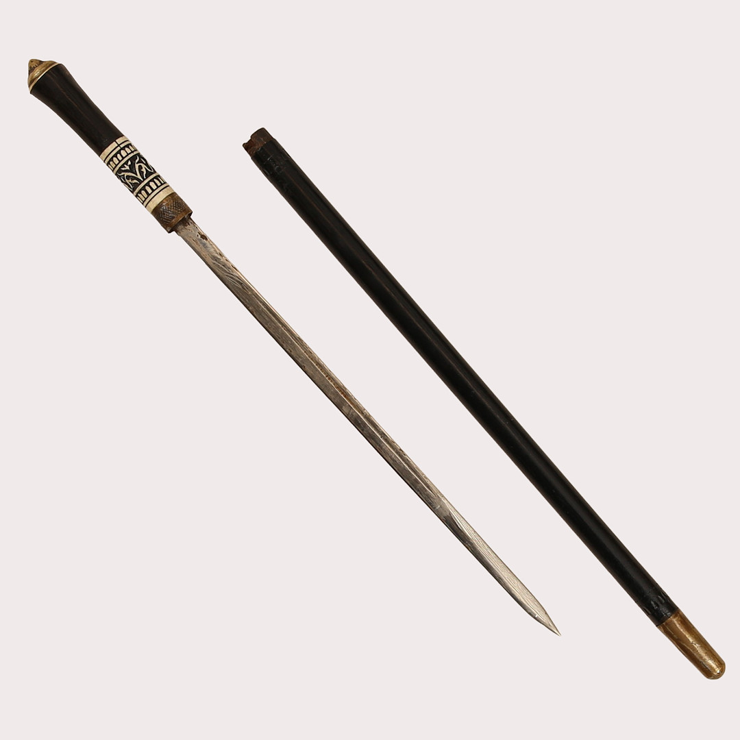 5007841. Schwertschwanz aus Holz/Metall/Knochen.