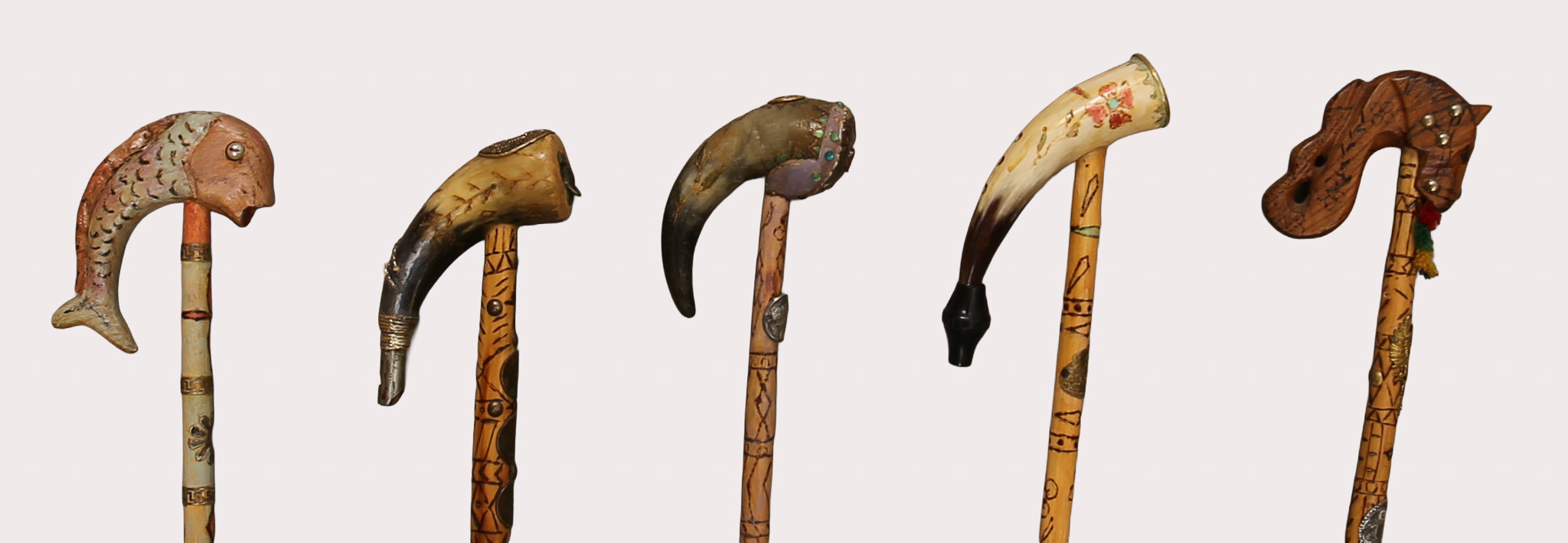 5012443. WANDERKÖPFE, Hörner, Holz, 5 Stück.