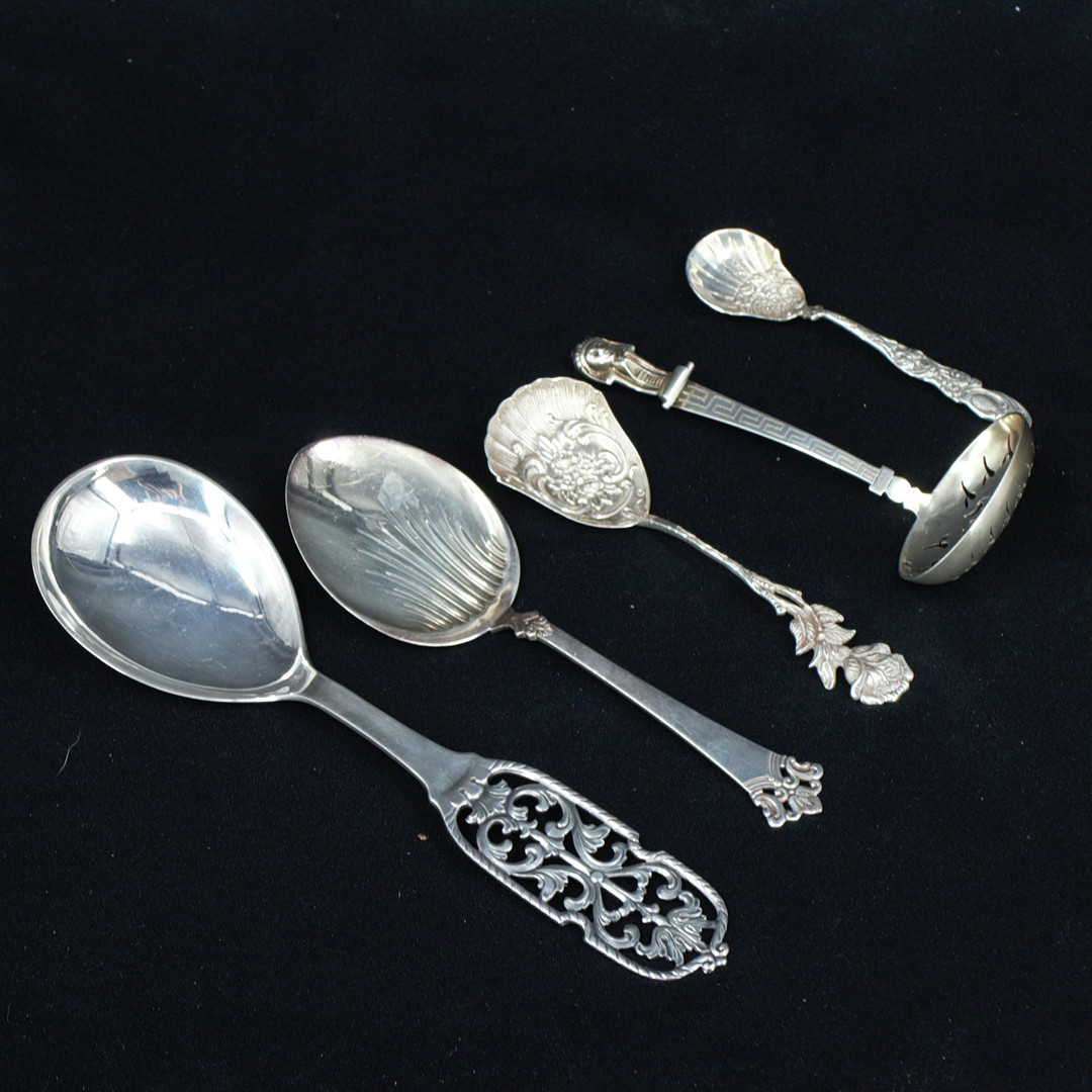 5013629. LÖFFEL, 5 Stück Silber, verschiedene Modelle.