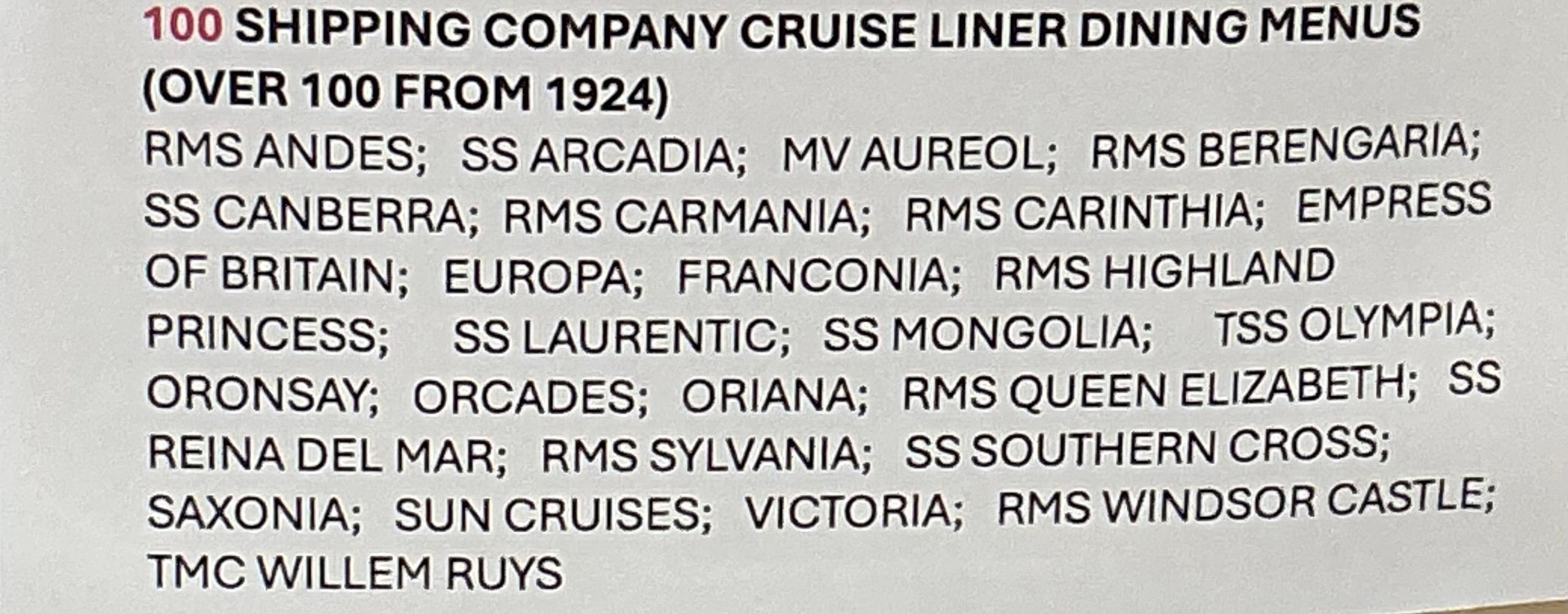 5013944. GEMISCHTE SPEISEMENÜS DER KREUZFAHRTLINIE.