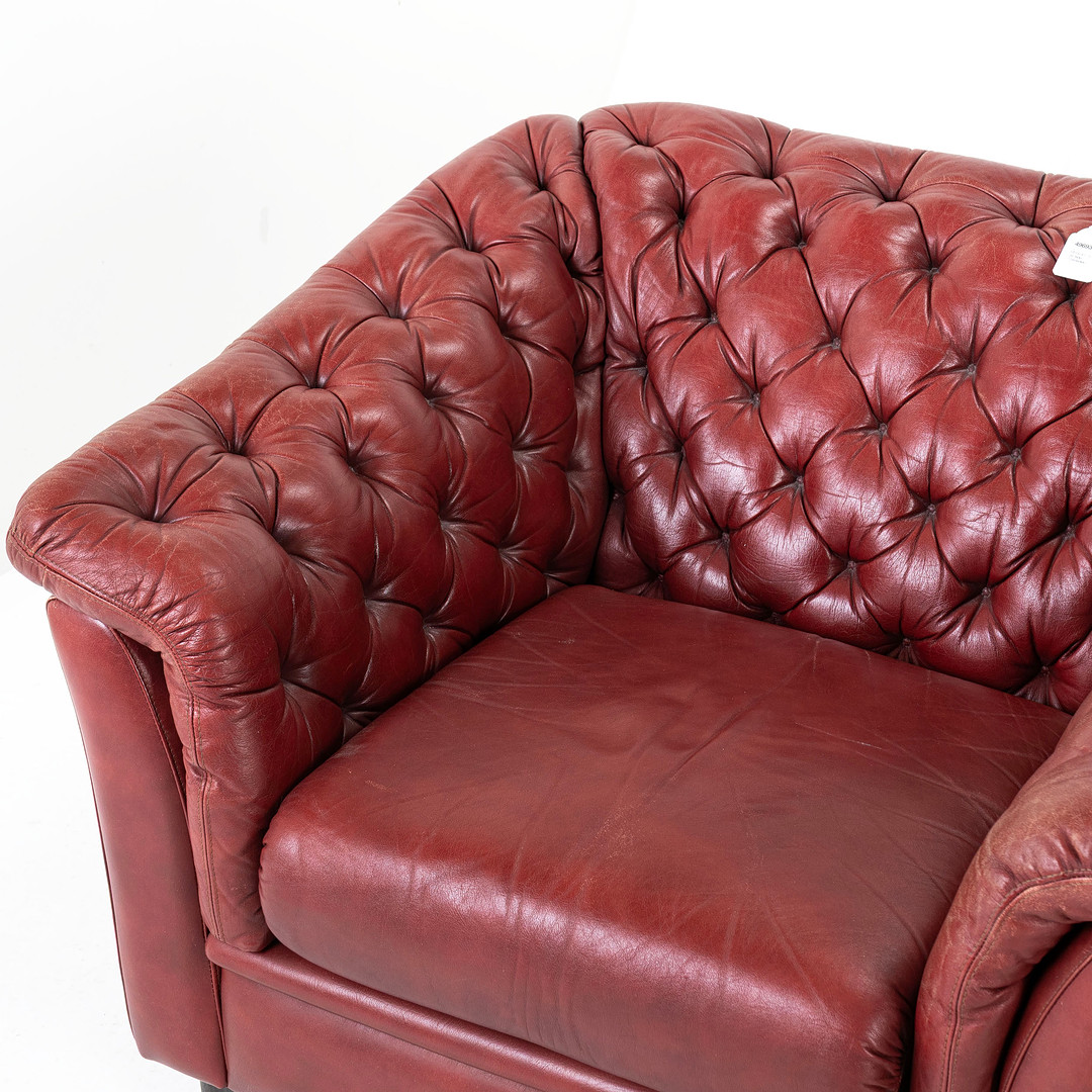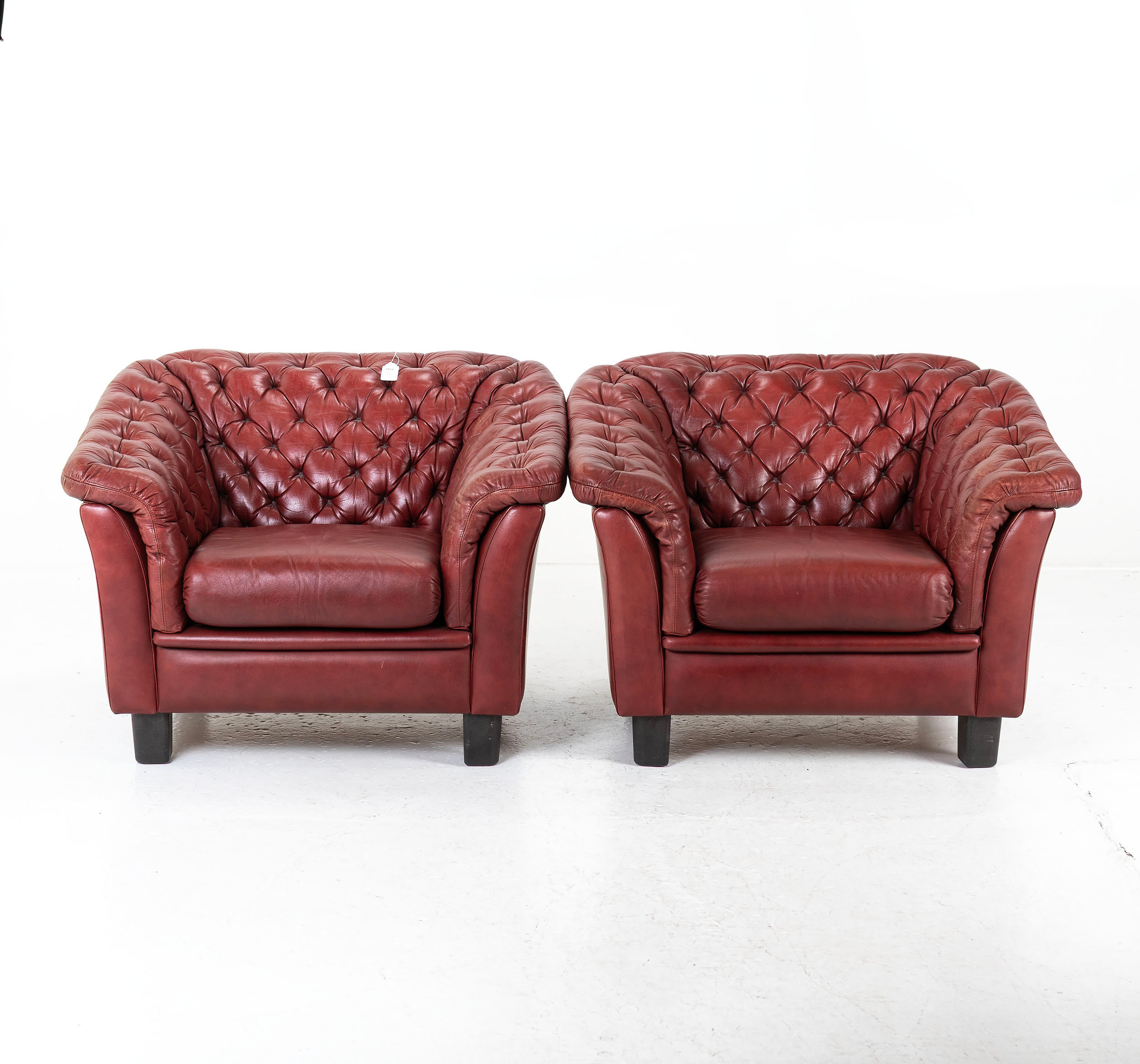 5014985. Ein Paar Sessel, Leder, „Chesterfield“.