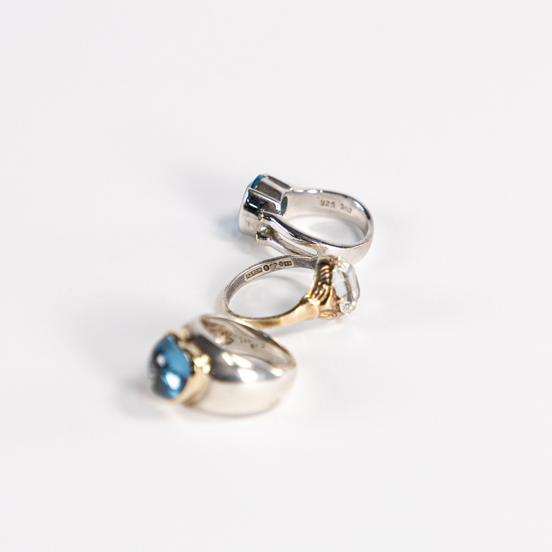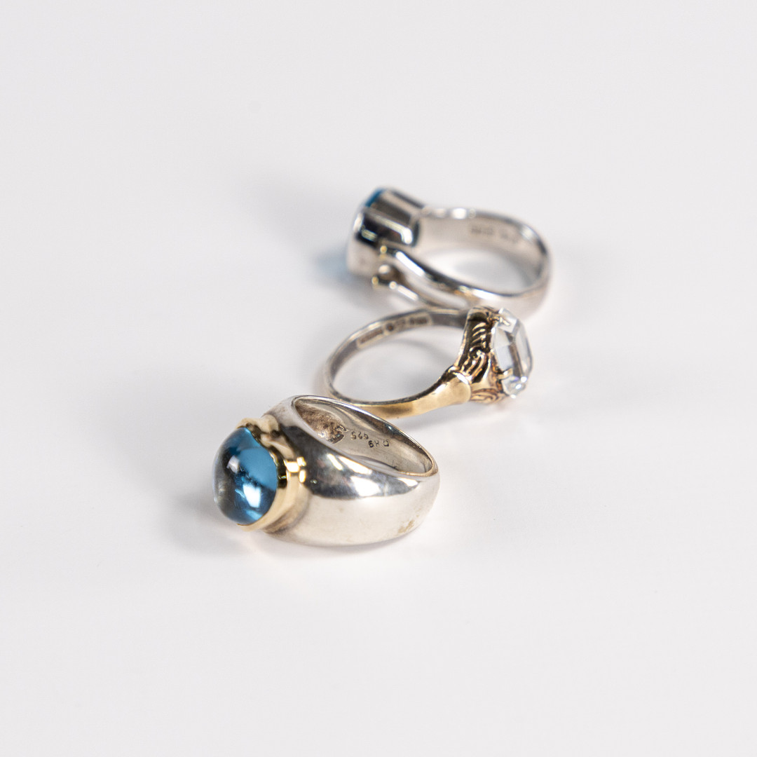 5015125. RINGE, 3 Stk., Silber, u. a. mit Topas.