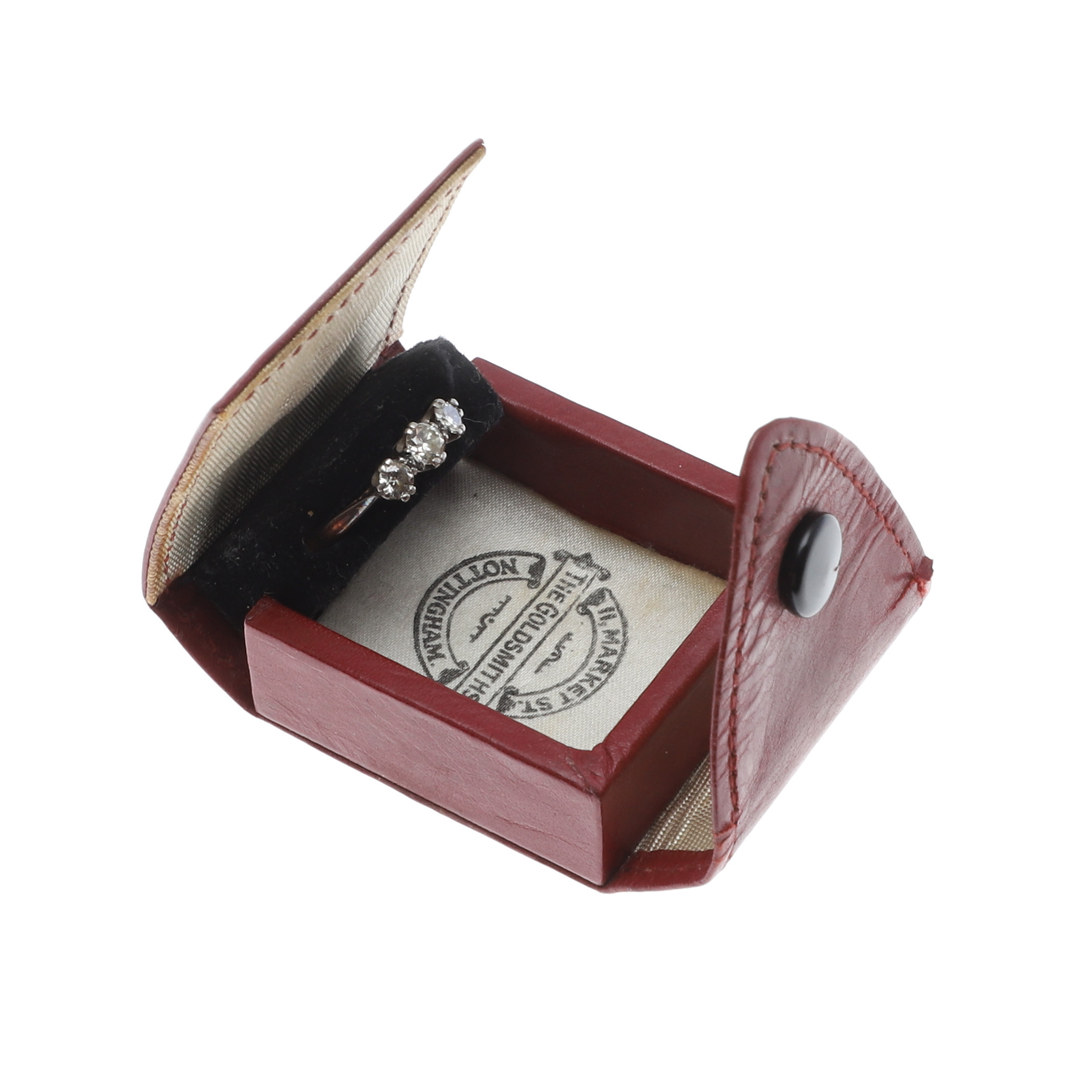 5015136. EIN DREI-STEIN-RING AUS 18 KARAT GOLD UND DIAMANT.