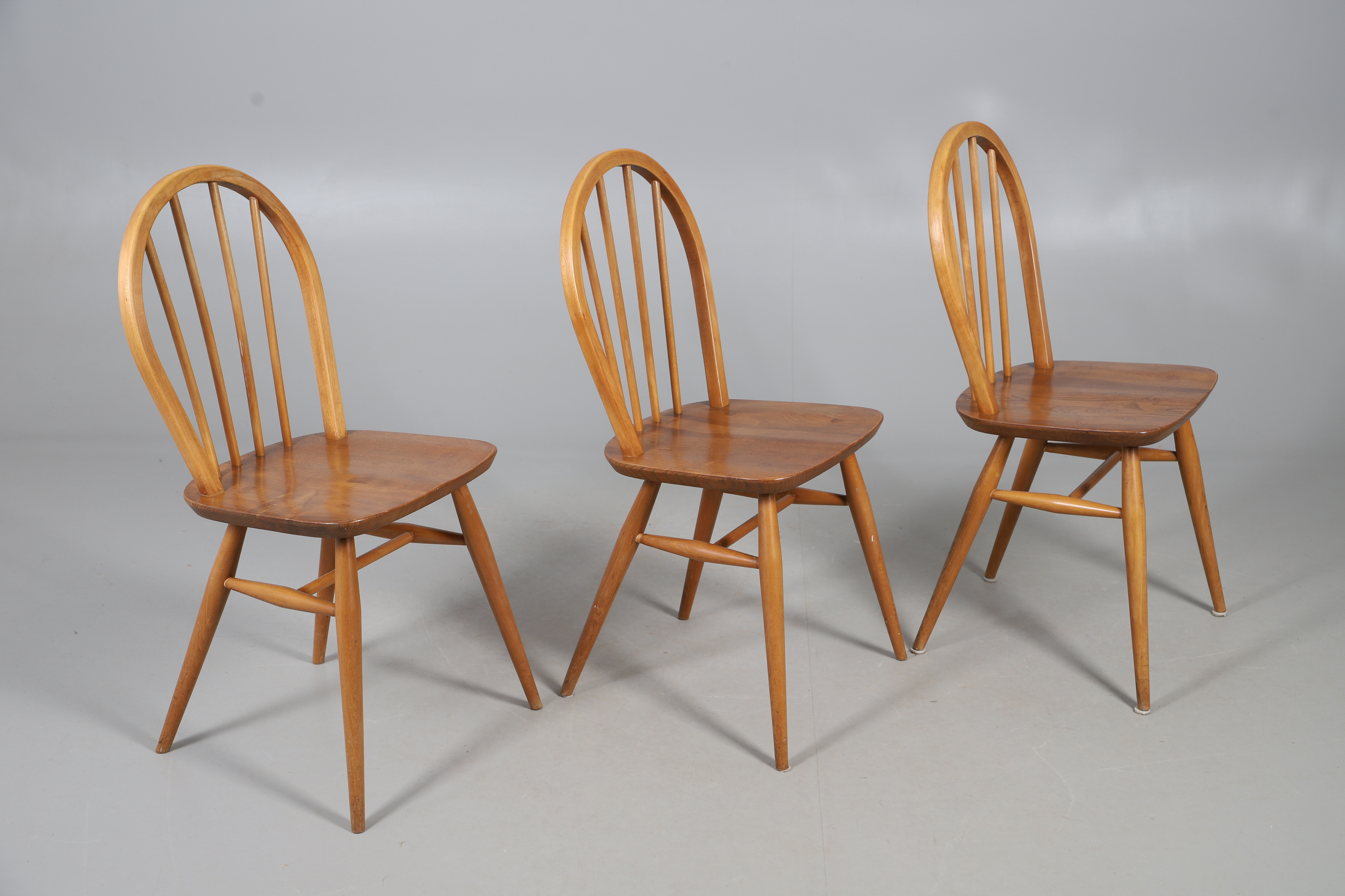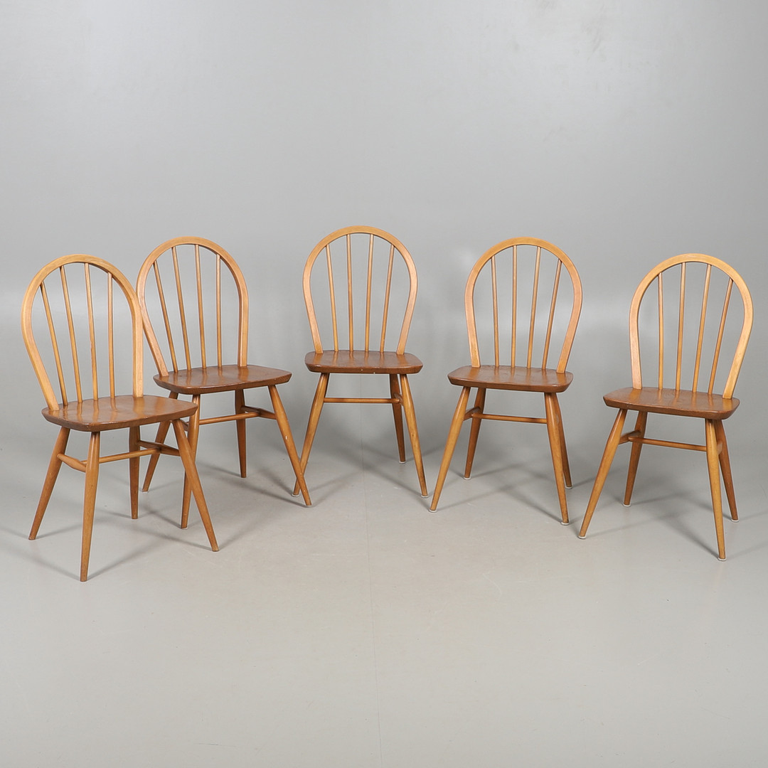 5016113. EIN SATZ VON FÜNF ERCOL-ESSZIMMERSTÜHLEN MIT SPINDELLEHNE.