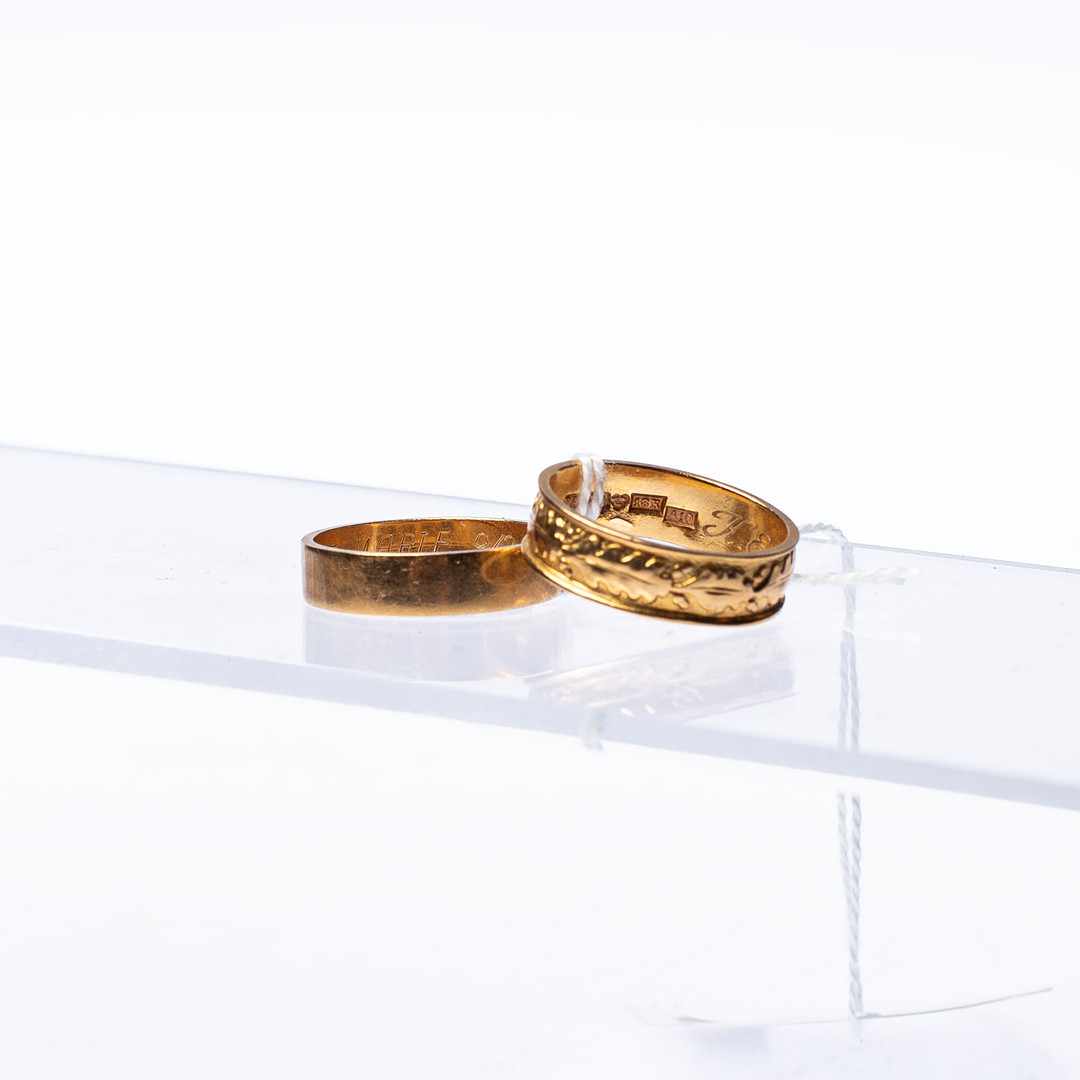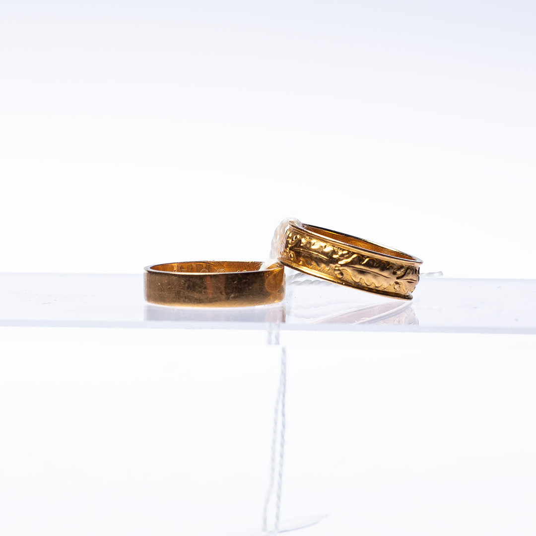 5018305. RINGE, 2 Stück, 18 Karat Gold, ca. 8,3 g.