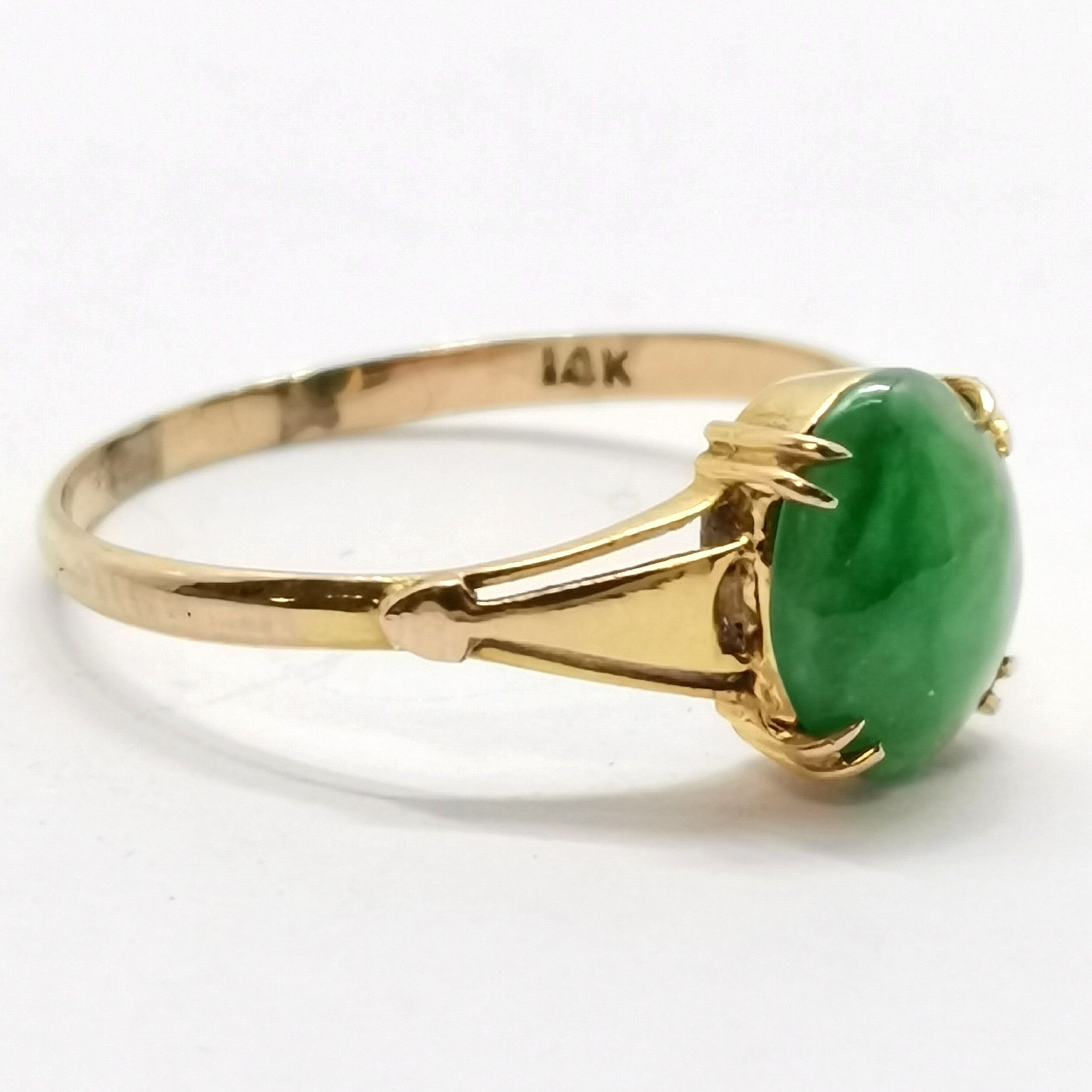 5018358. RING AUS 14-KARÄTIGEM GOLD MIT NEPHRIT UND JADE.