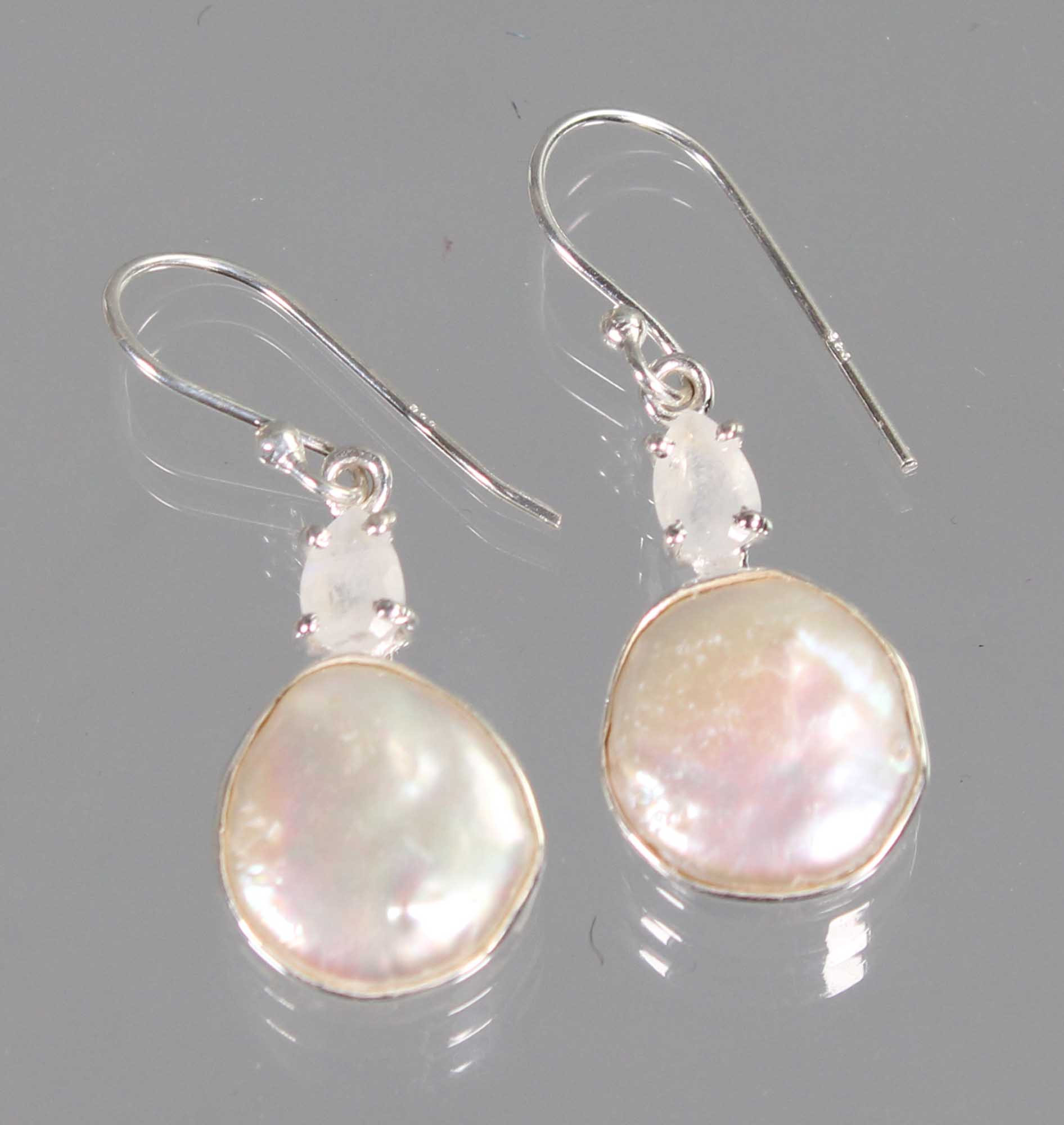 5021997. PERLEN OHRRINGE MIT MONDSTEIN, Silber 925.