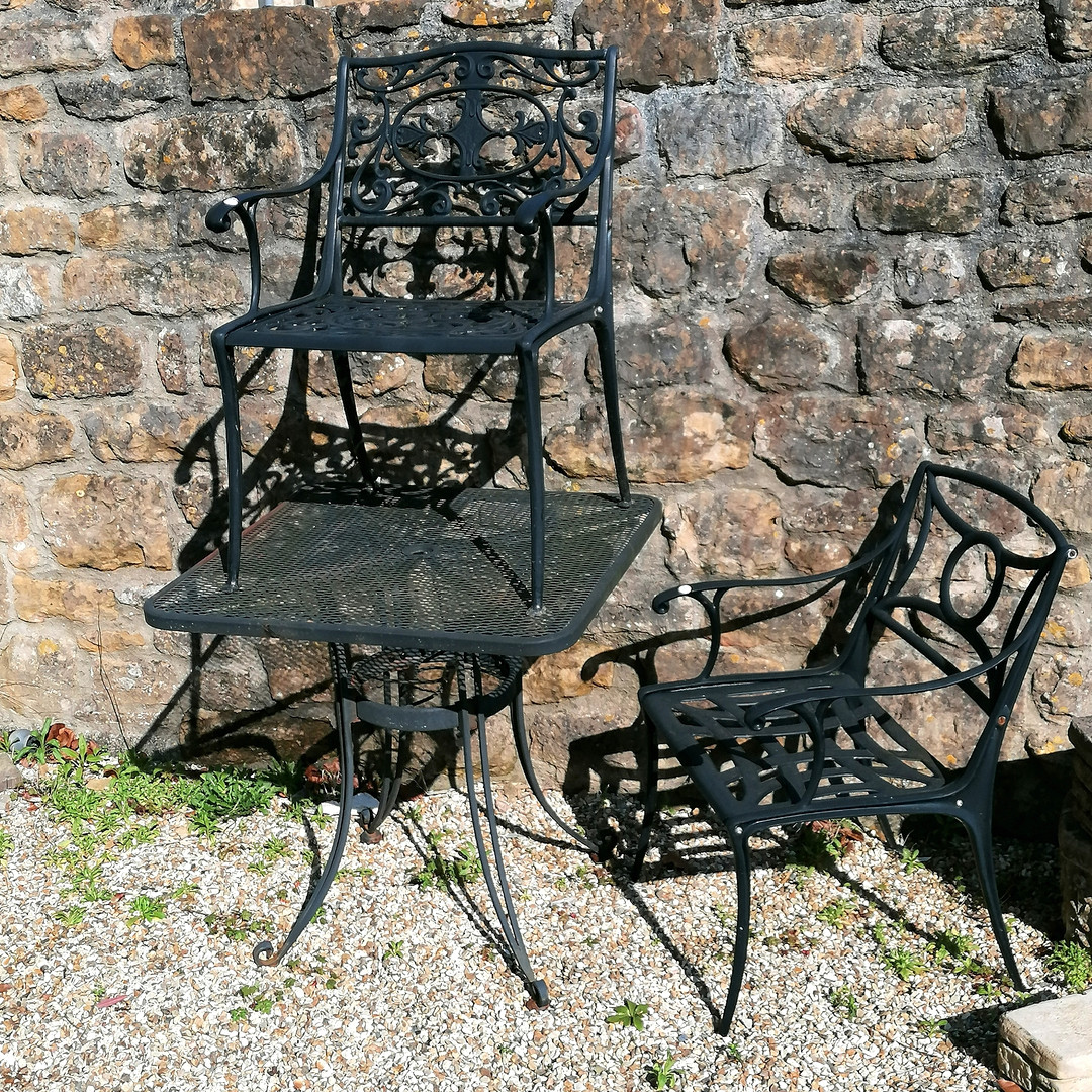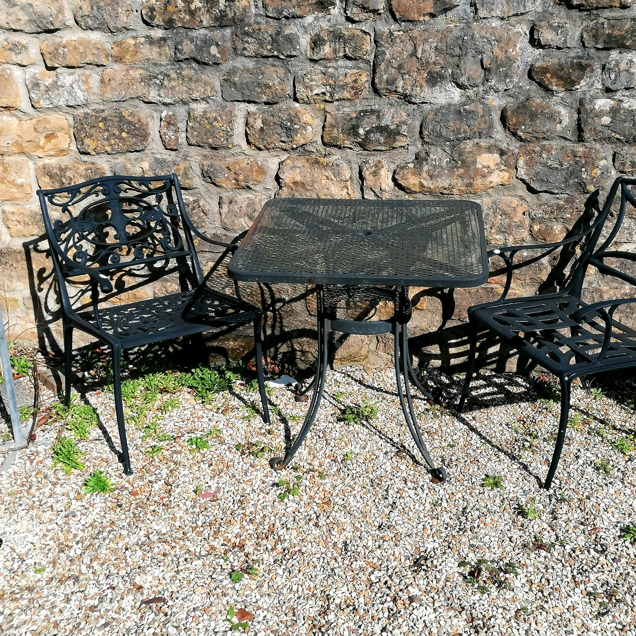 5022365. QUADRATISCHER SCHWARZER METALLTISCH UND 2 SESSEL.