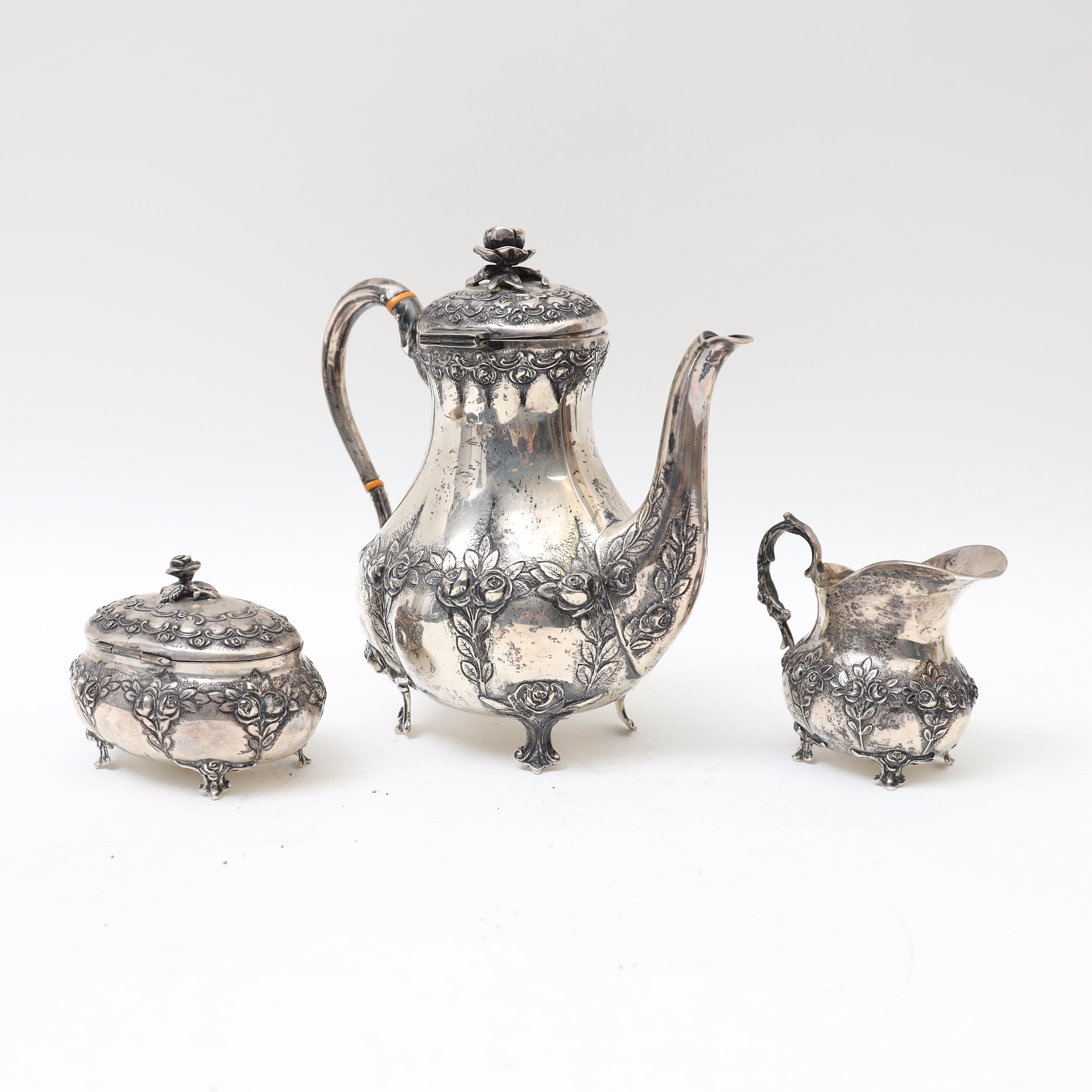 5023443. KAFFEESET, 3-teilig, Silber, Rokoko-Stil.