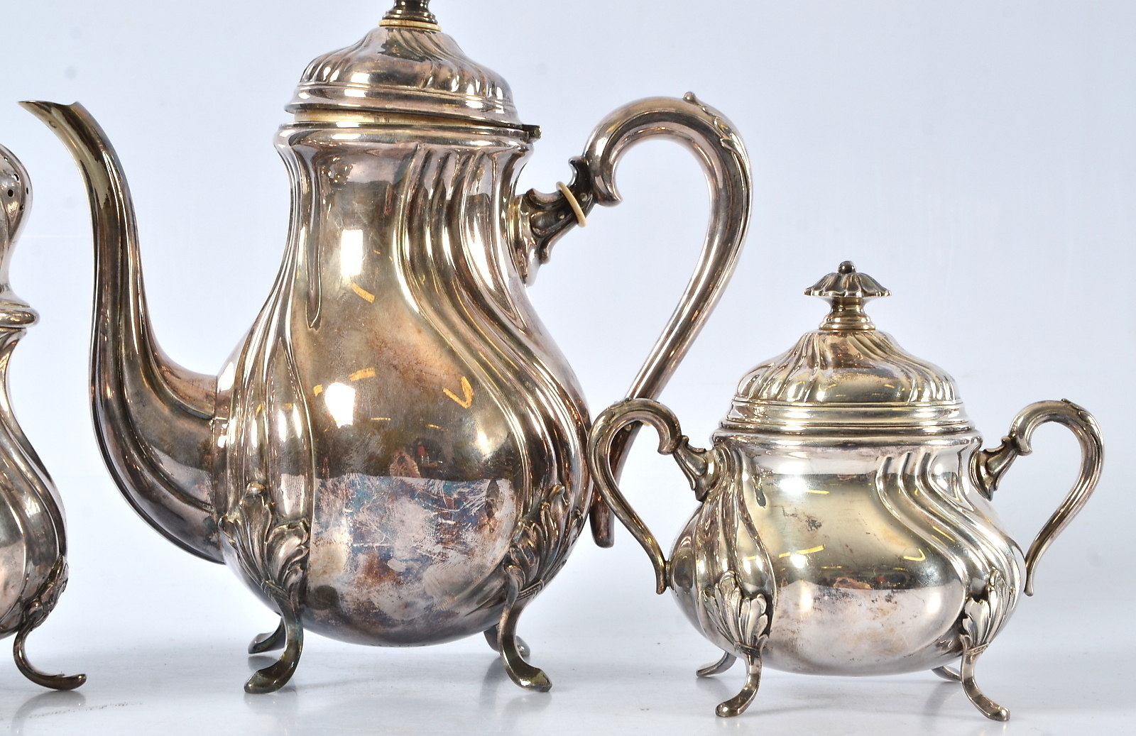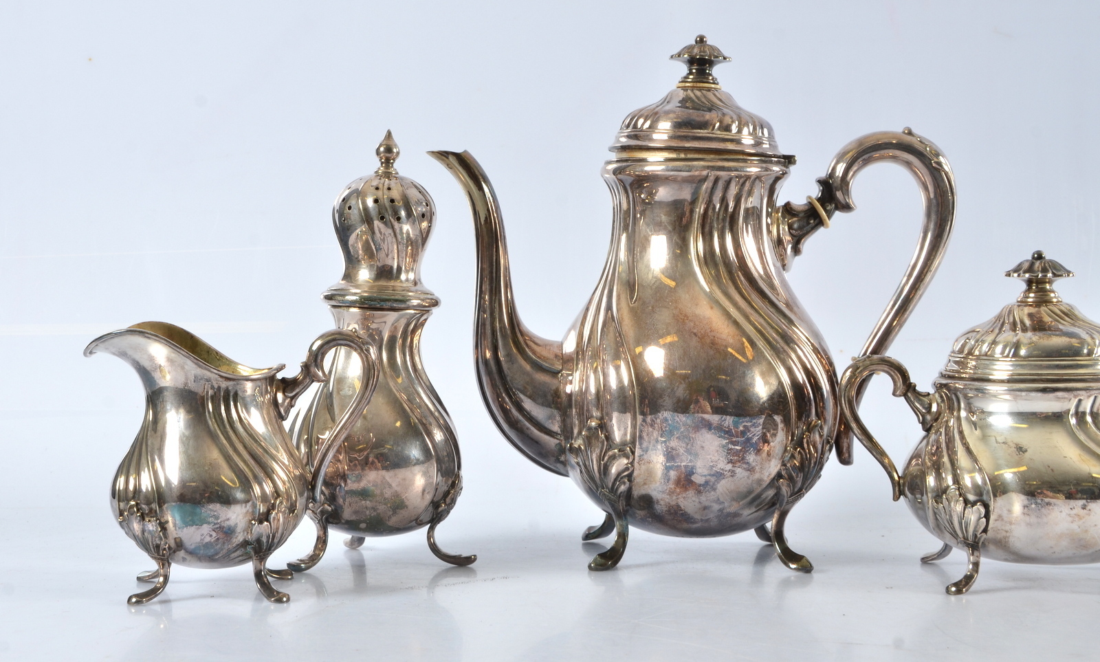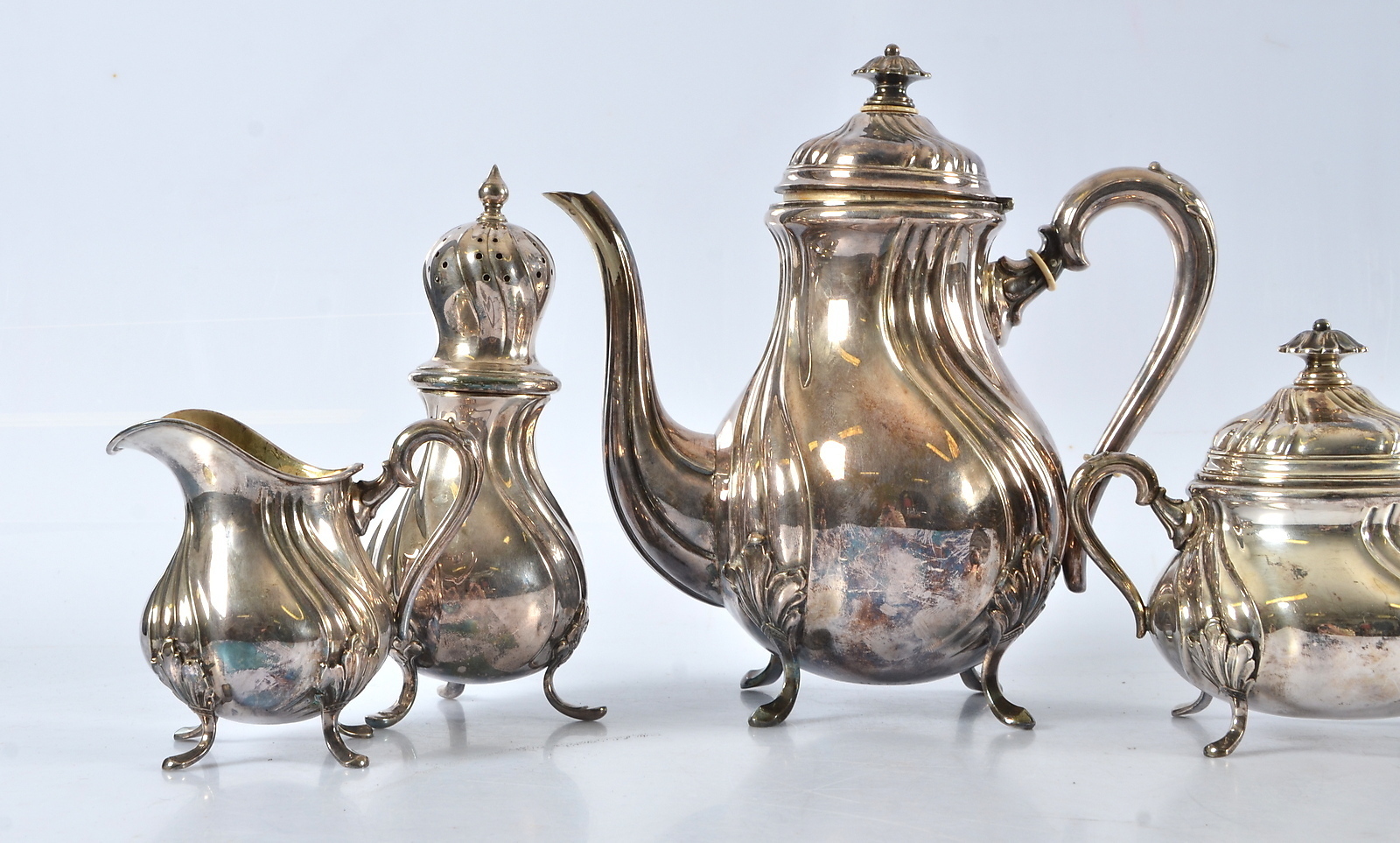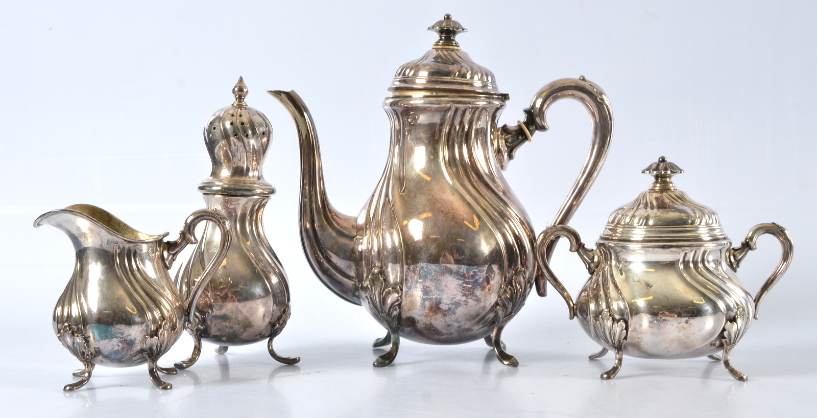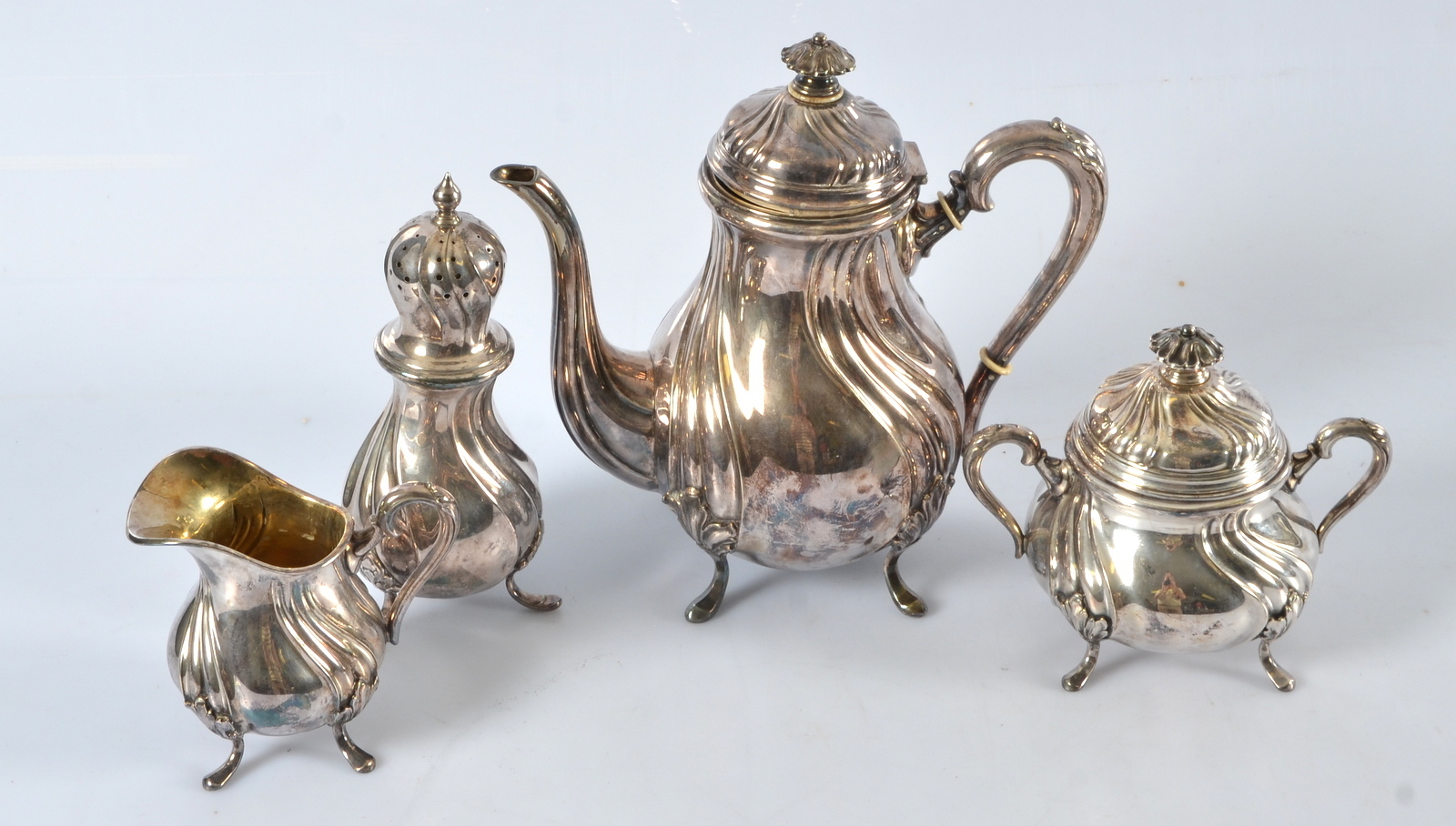 504454. NEUE SILBEROBJEKTE, 4 Teile, Rokoko-Stil.