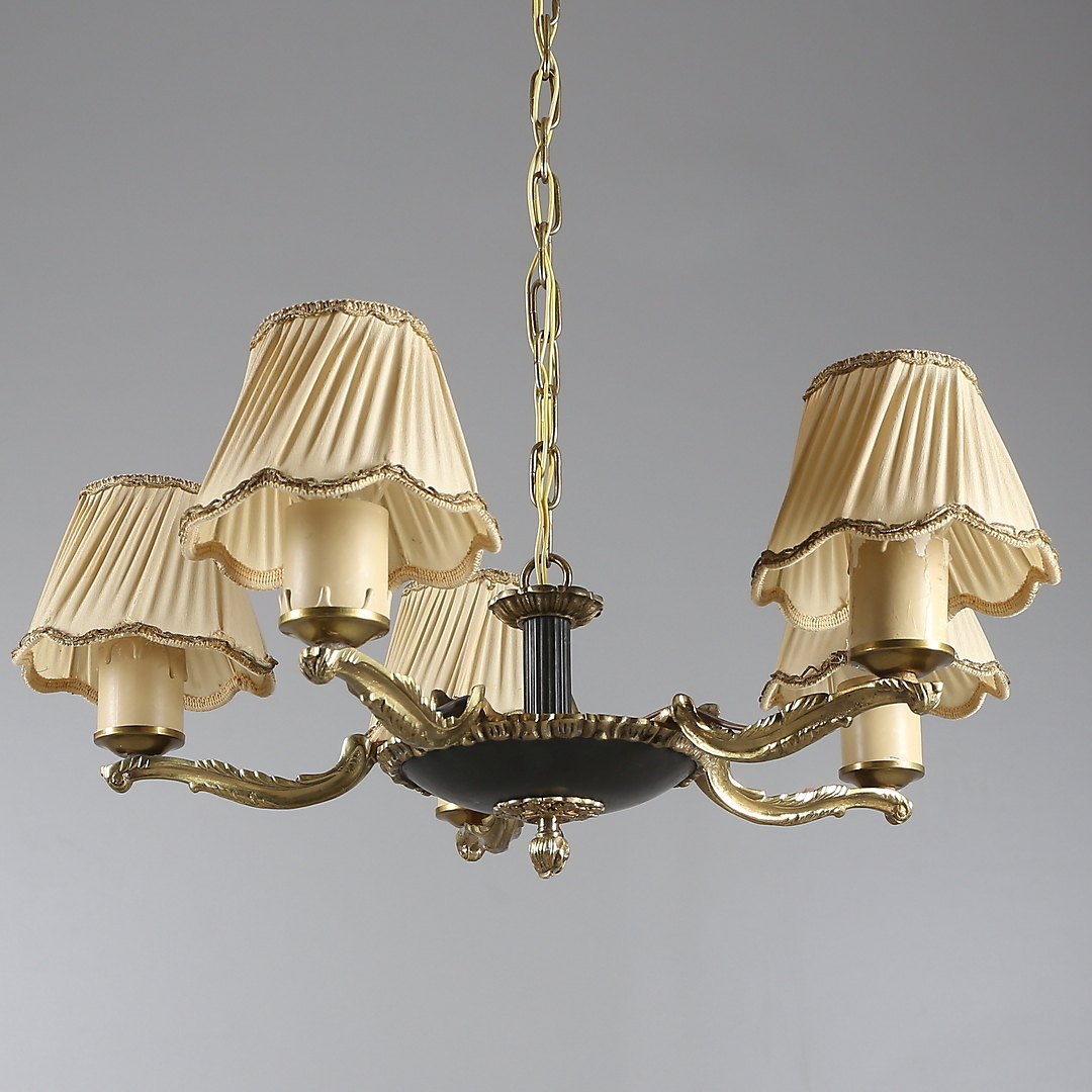 509371. DECKENLAMPE, Messing, 5 Arme, 1900er.