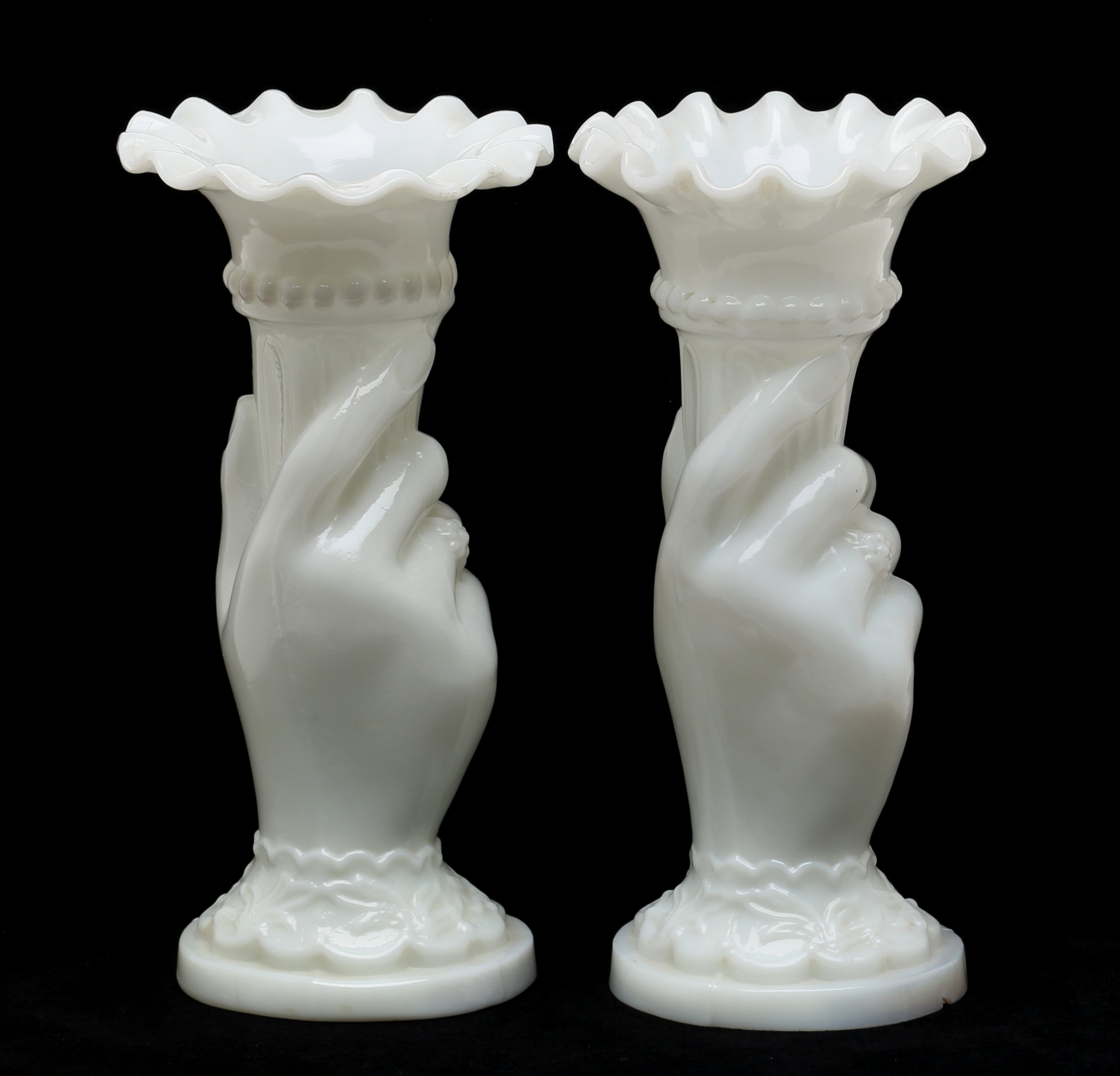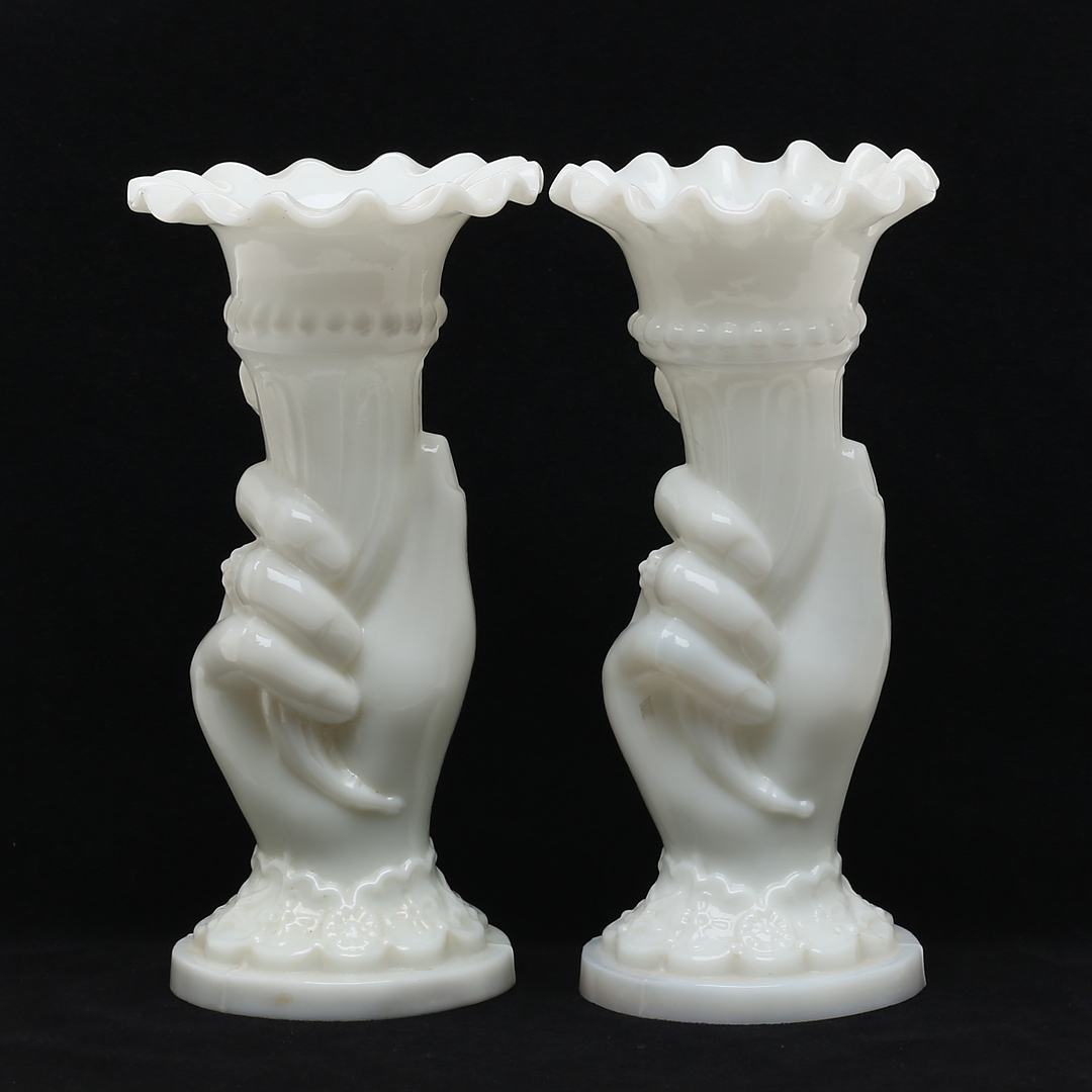 512016. VASEN, 1 Paar, Opalglas, spätes 19. Jahrhundert.
