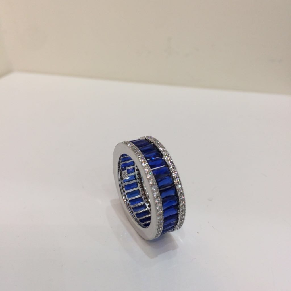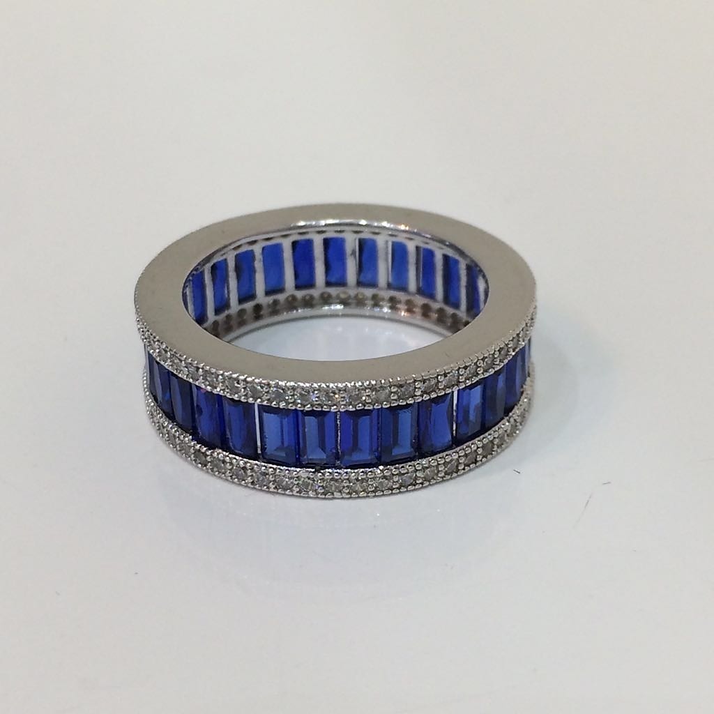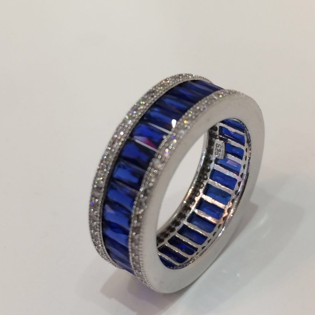 513630. SILBER-IMITATIONS-SAPHIR-CZ-VOLLSTÄNDIGER ETERNITY-RING.